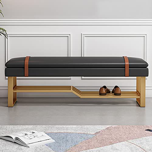 Luxurious Large Capacity Shoe Storage,Entryway Shoe Changing Stool for Hallway Bedroom Bench,Leather Shoe Bench with Upholstered Seat-Blue 100x35x45cm(39x14x18inch)