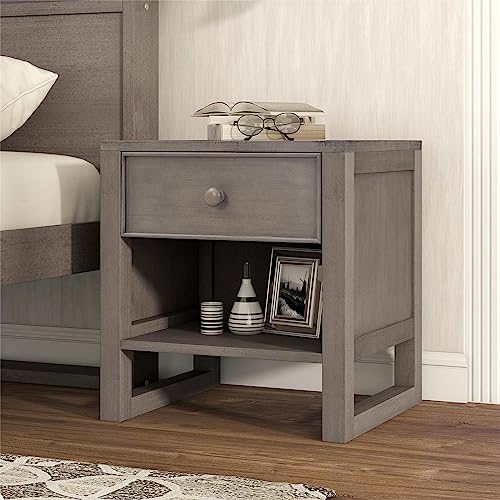 Wood Nightstand for Kids Room, Small Night Stand, End Table with Storage Drawer and Open Shelf, Bedside Table, Side Table with Sturdy Frame and Thick Legs, Space Saving, 20" L x 17" W x 20.5" H