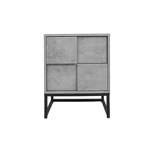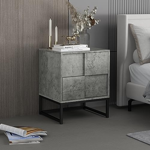 Witty Industrial Style Bedside Table - 55 lbs Load Capacity, Cement Grey Design, Space-Saving with Easy Cleaning