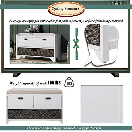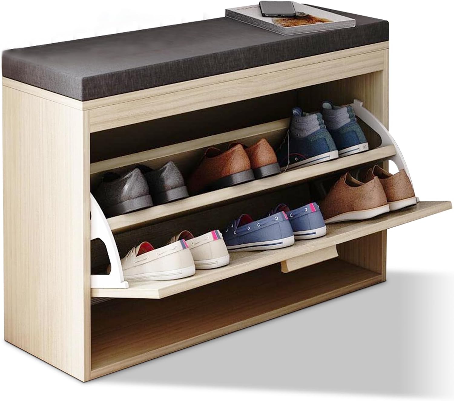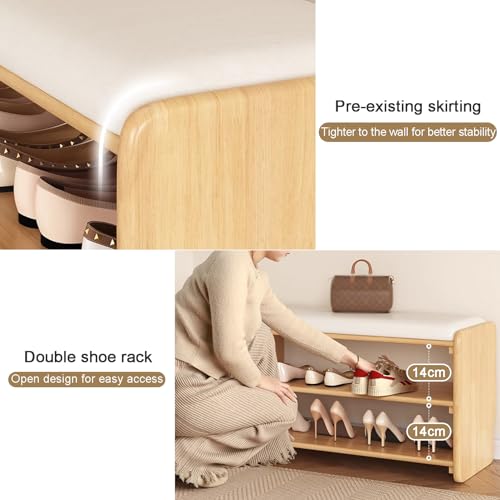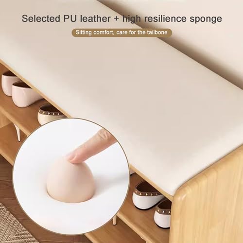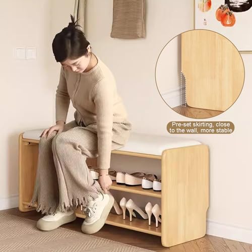 Modern Wood Entryway Shoes Storage Bench Stool with Seat Shoe Ottoman Rack Cabinet with Free Seat Cushion for Hallway Door for Small Space Home Furniture