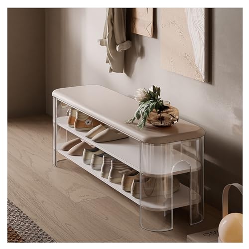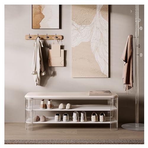Shoe Bench Acrylic Shoe Bench, Solid Wooden Entrance Shoe Bench, Shoe Rack Bench with Organizer Shelf for Hallway, Bedroom, Living Room Shoe Bench with Seat(Black,100 * 30 * 44cm)