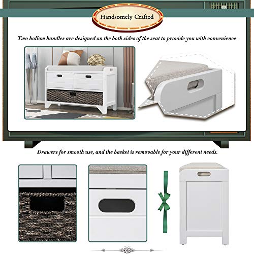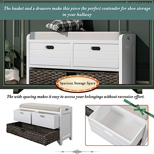 Storage Bench, Entryway Bench with Removable Basket and 2 Drawers, Shoe Bench with Removable Seat Cushion for Hallway, Entryway, Living Room, Fully Assembled (Espresso)