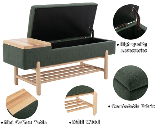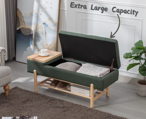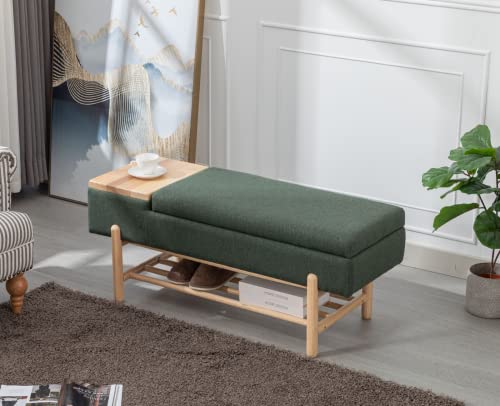 CIMOTA Entryway Storage Bench for Bedroom Upholstered End of Bed Ottoman Bench with Wood Shoe Storage/Coffee Table for Living Room/Hallway/Under Window, 46.5 Inches, Linen Green