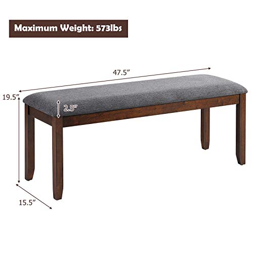 GORELAX Dining Bench Seat, Shoe Bench w/Linen Fabric Cushion, Piano Bench w/Non-Slip Foot Pad & Rubber Wood Leg, Upholstered End of Bed Bench, Bedroom Hallway Entryway Bench, Dark Grey (1)
