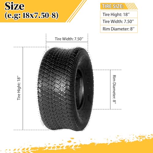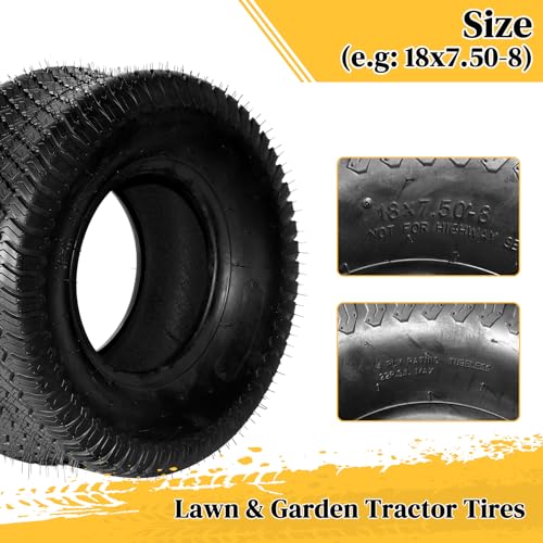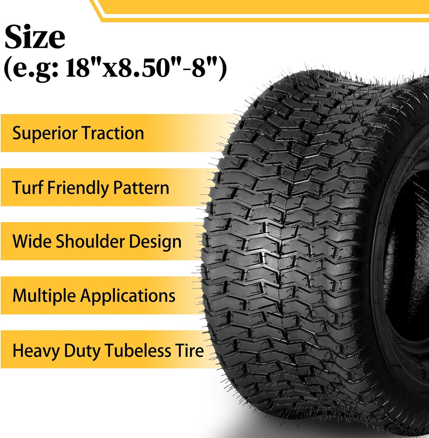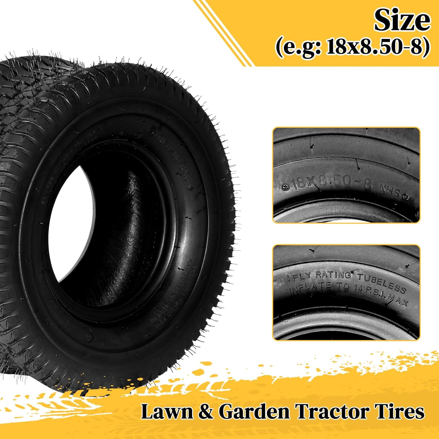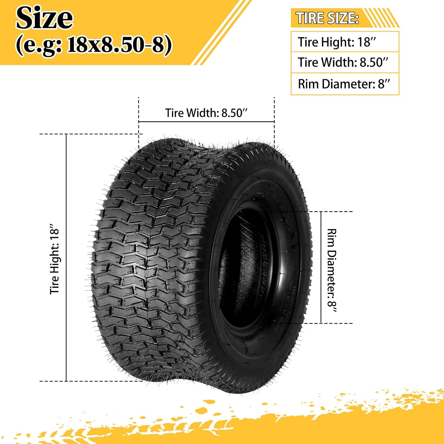 MOTORHOT Set of 2 18x8.50-8 4PR Tires Garden Lawn Mower Tractor Golf Cart Tires SW:8.27in(210mm)