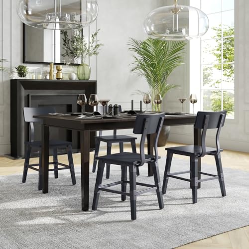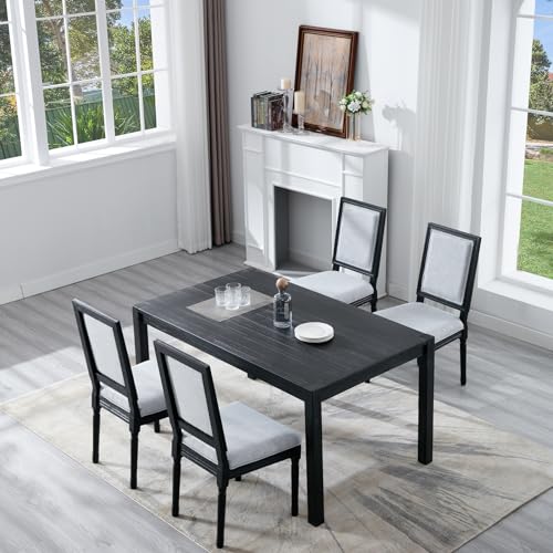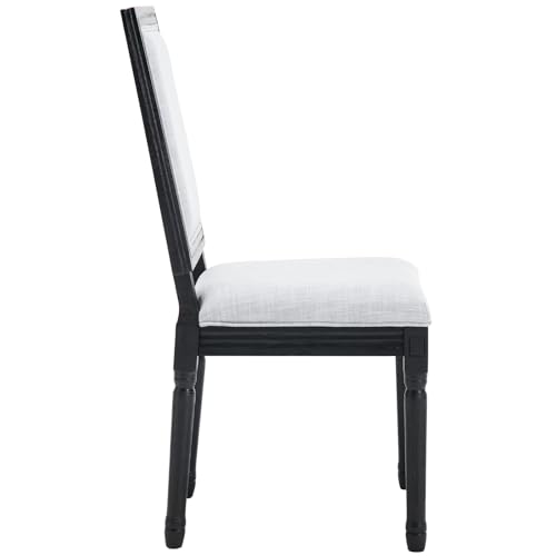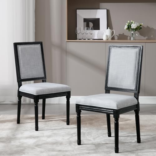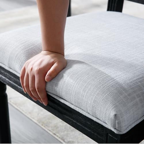 Black Dining Chairs Set of 2, French Country Dining Room Chairs with Round Cushion Back, Farmhouse Kitchen Chairs Upholsterd Side Chair for Dinner/Restaurant, Beige