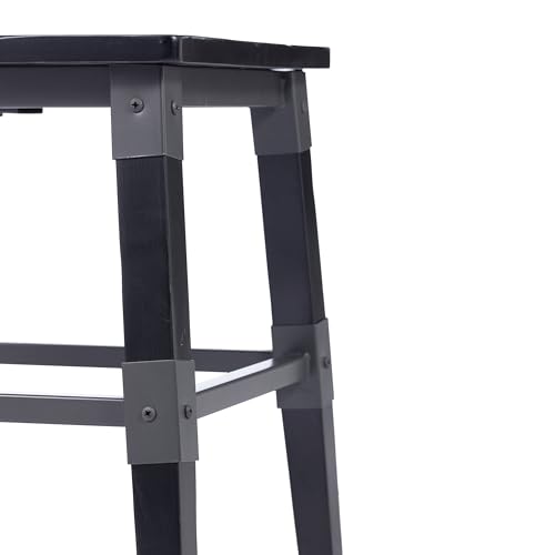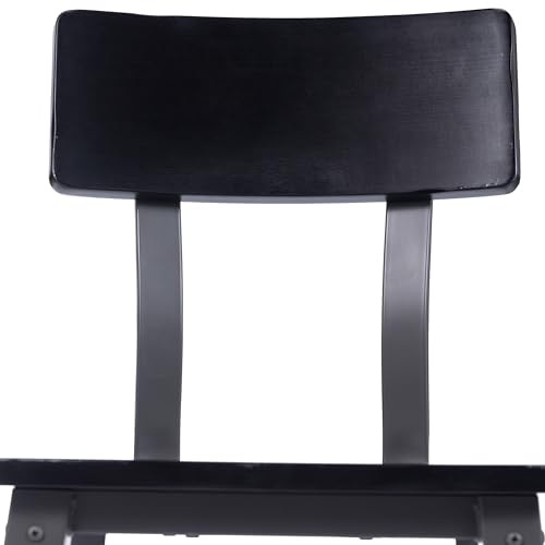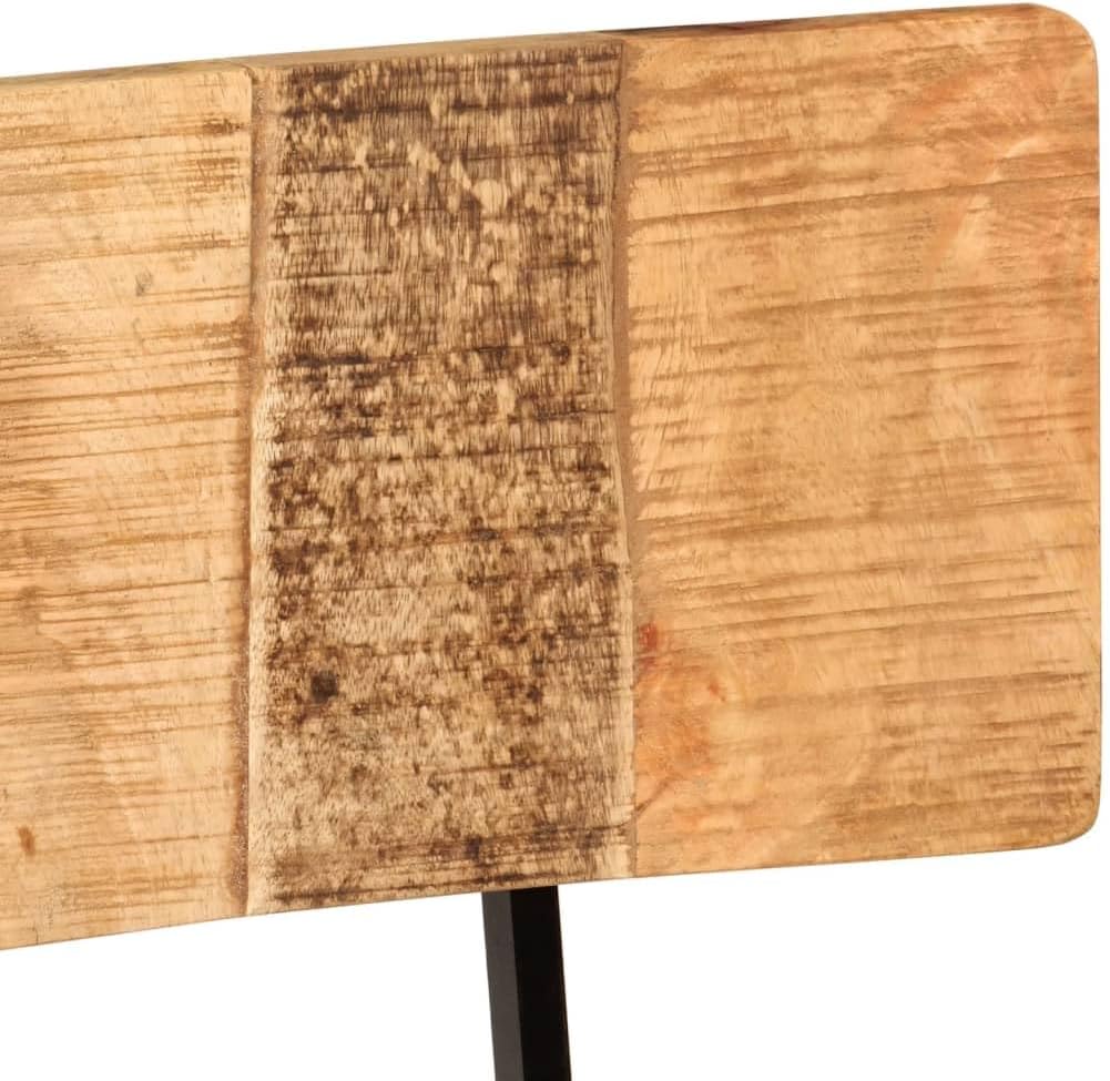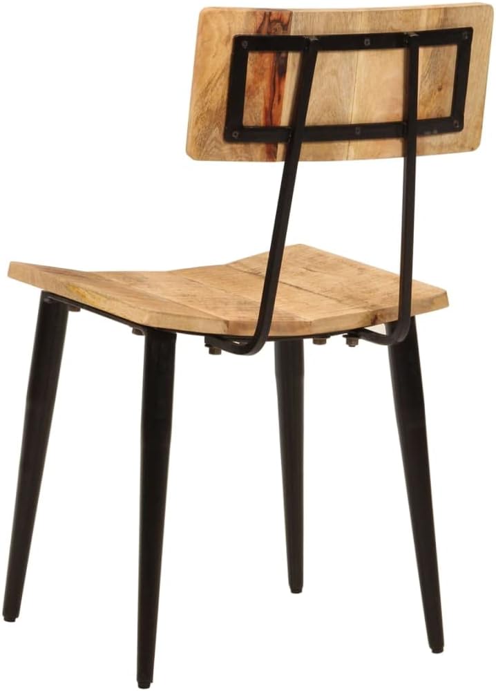 SecondBoy Pair of Natural Wood Grain Finish Wooden Antique Mango Wood Chair Black Iron Frame Dining Chair Arch Seat Slant Pin Leg