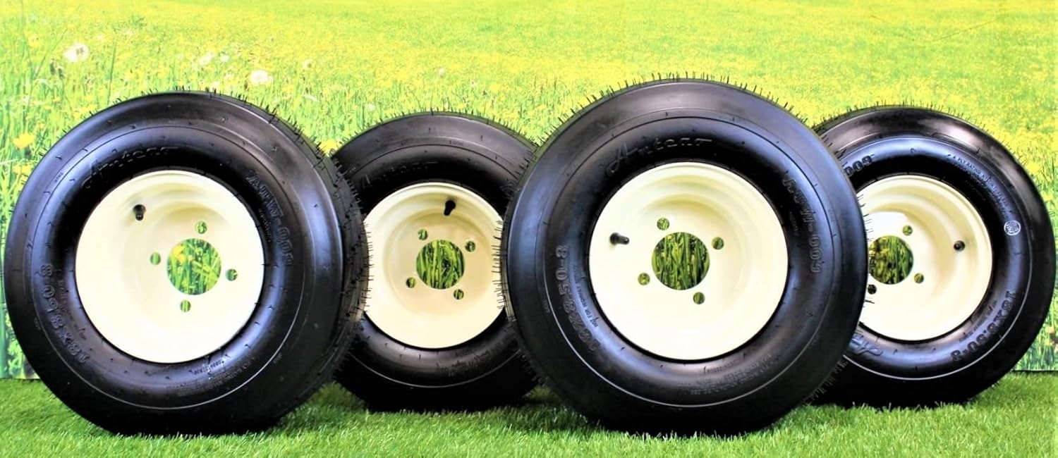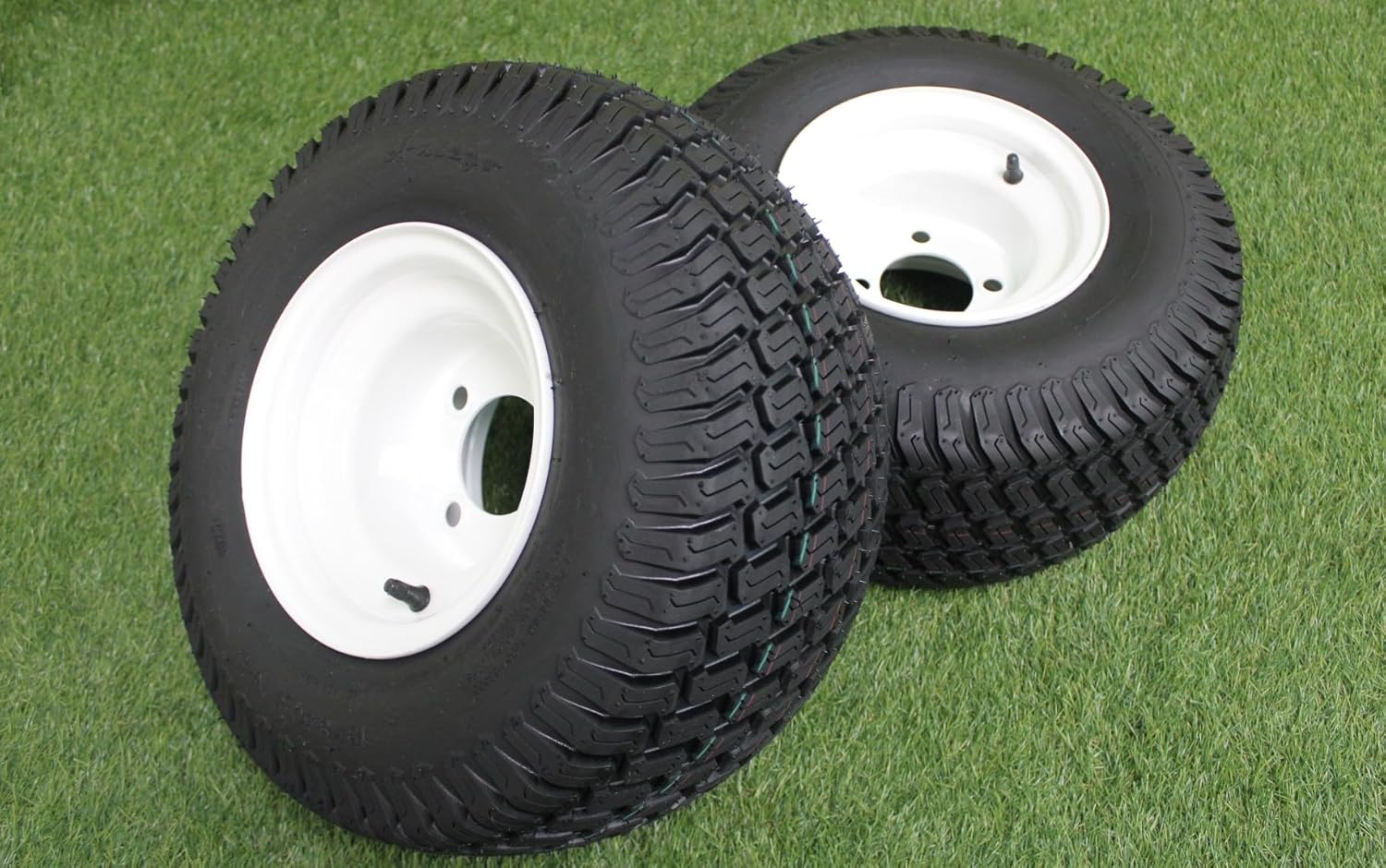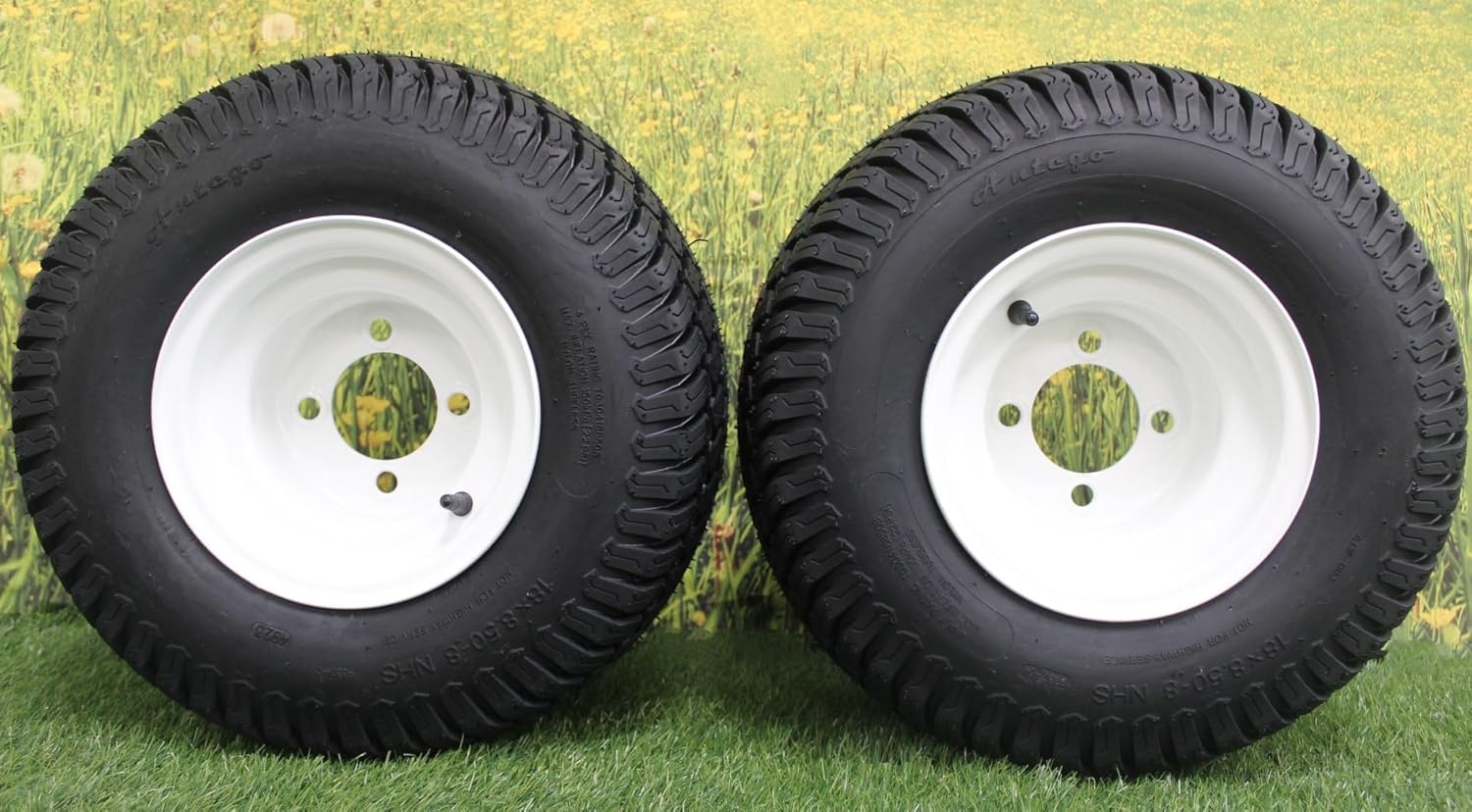 Antego Tire & Wheel 18x8.50-8 Turf Tires on 8x7 White Steel Wheels Compatible with Golf Carts and Mowers (Compatible with Toro Grandstand) (Set of 2)