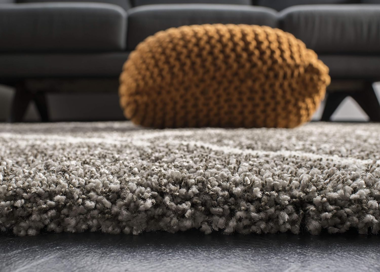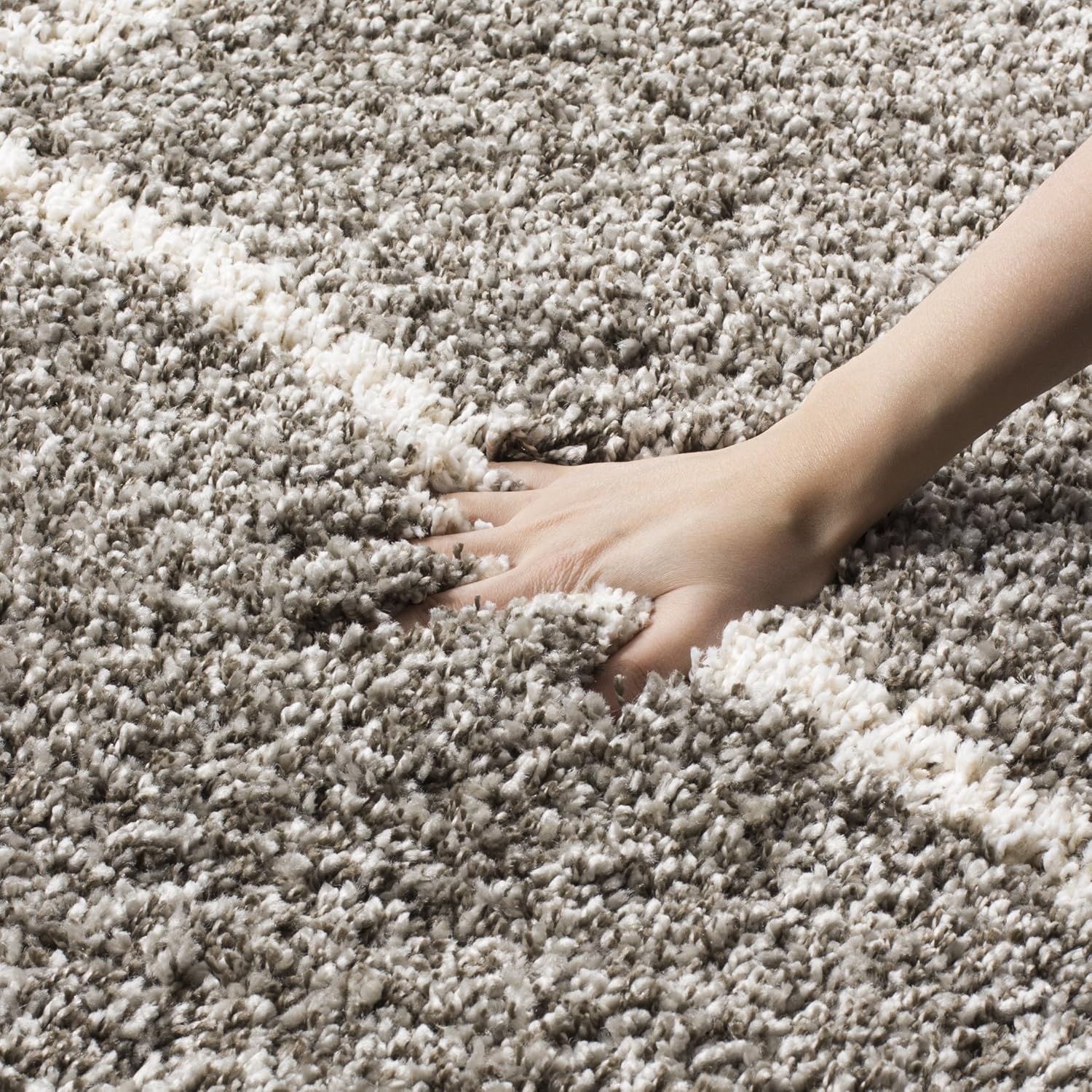 SAFAVIEH Hudson Shag Collection 9' Round Grey/Ivory SGH281B Modern Diamond Trellis Non-Shedding Living Room Bedroom Dining Room Entryway Plush 2-inch Thick Area Rug