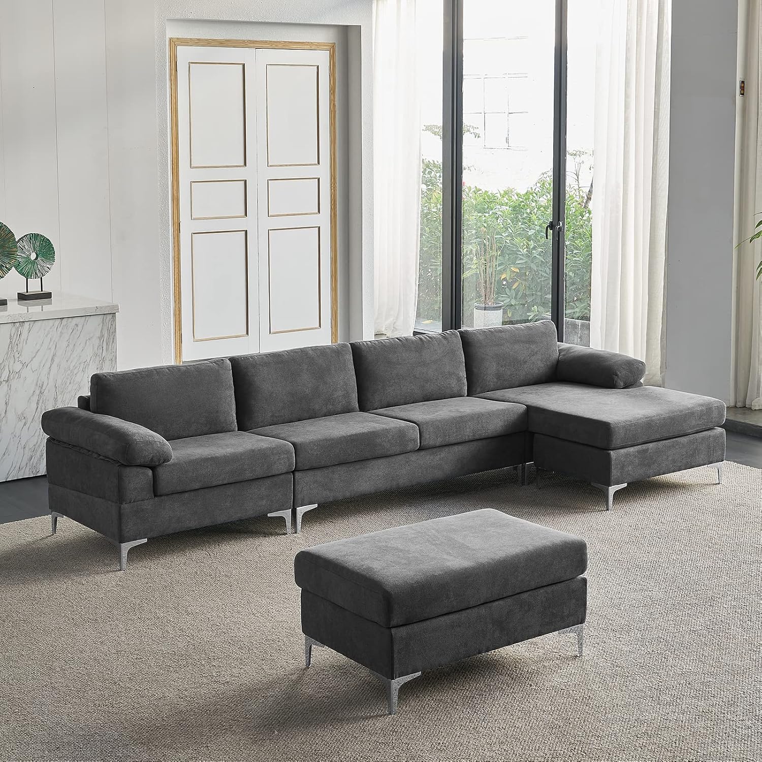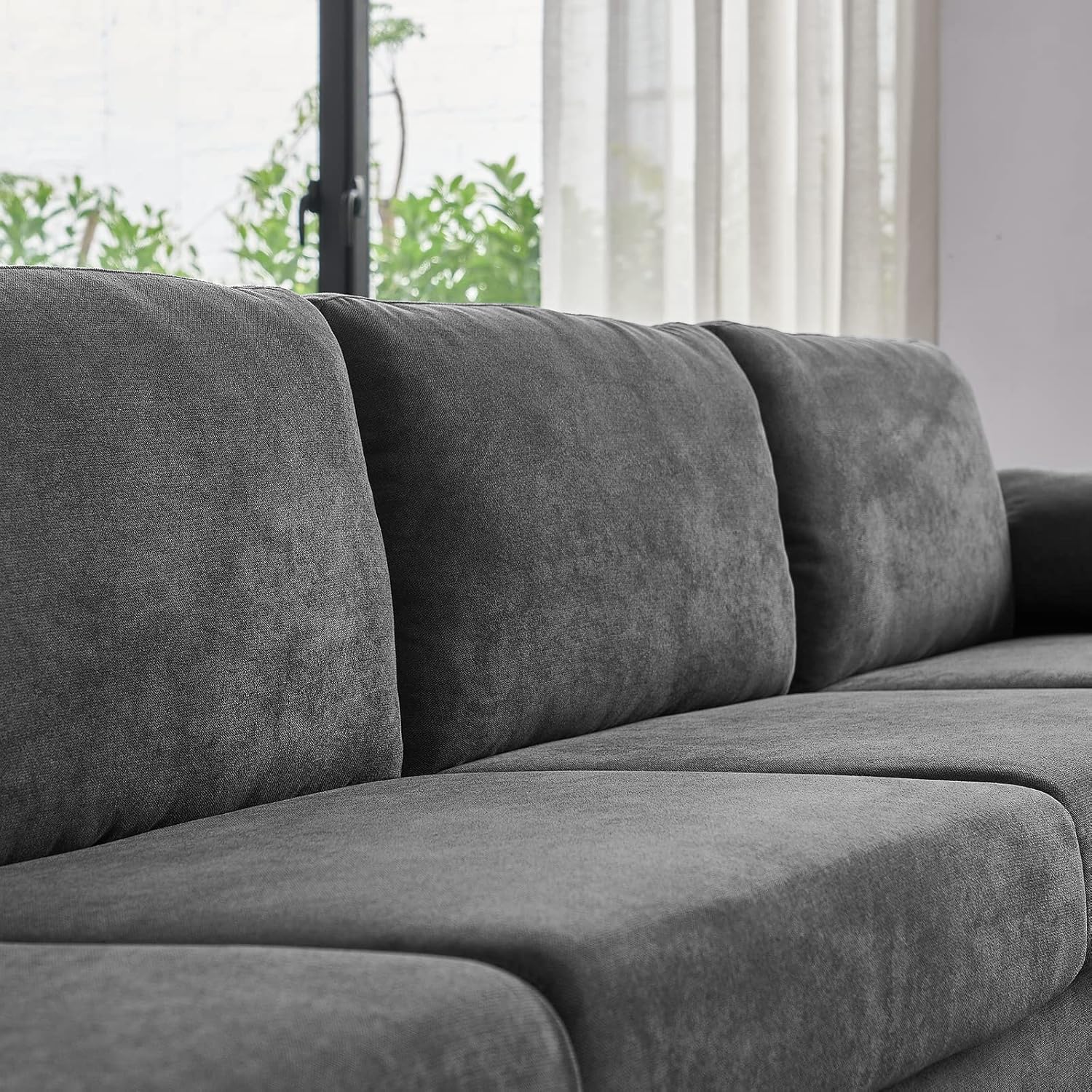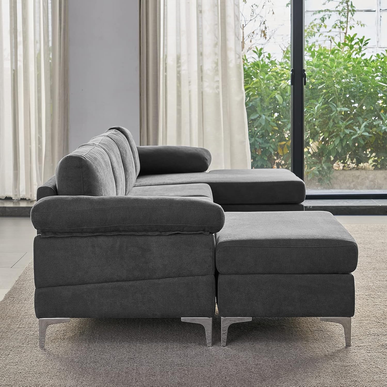 Pannow Modern L-Shaped Convertible Sectional Sofa Couch, Modular Soft Fabric Corner Sectional Futon Sofa with Removable Cushions and Ottomans Convertible Sofa Couch for Living Room, 131”L (Dark Grey)