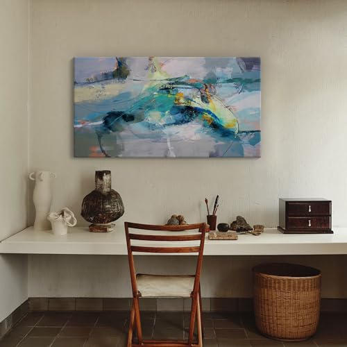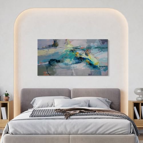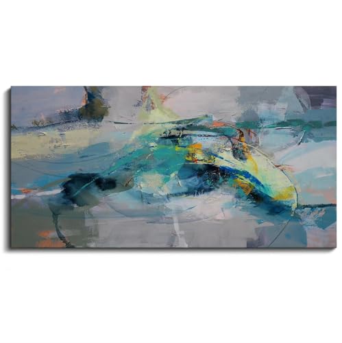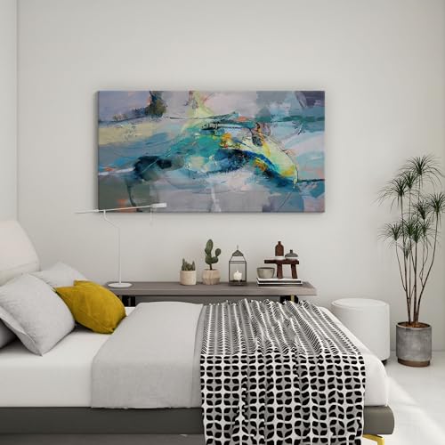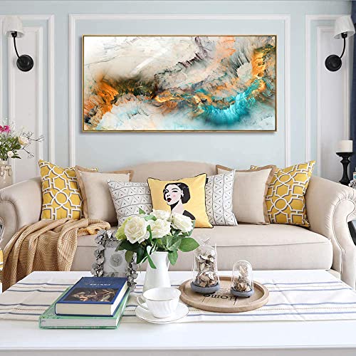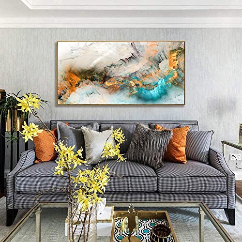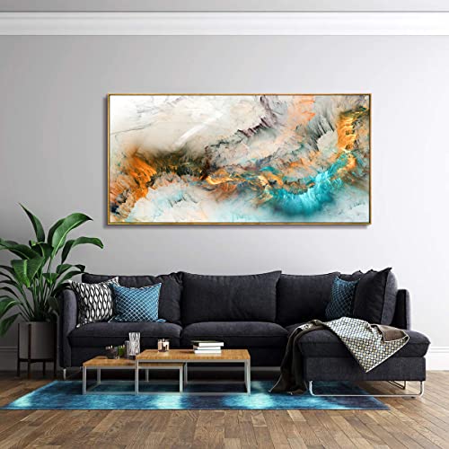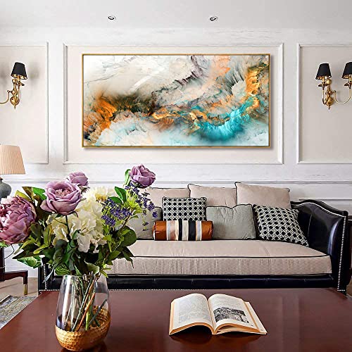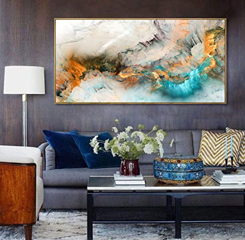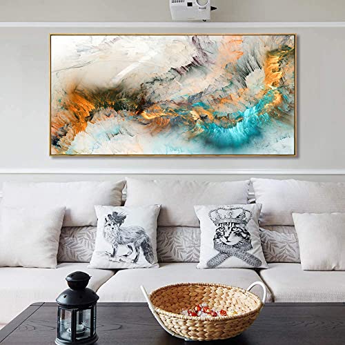 Wall Art Light Gray Blue Yellow Cloud Abstract Canvas Frames - Canvas Painting Wall Art Print Poster for Living Room Decoration 24"x48" with Framed