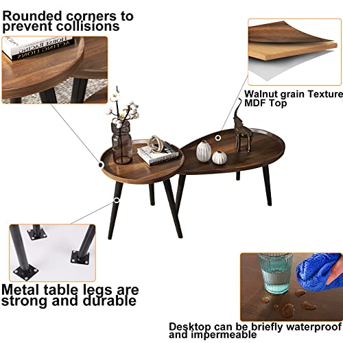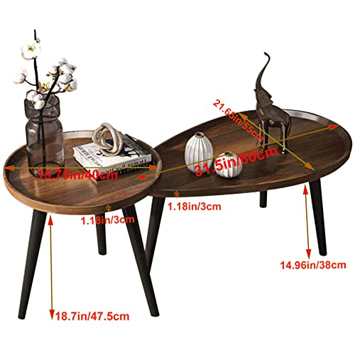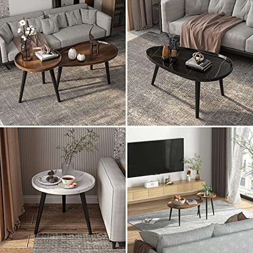 SHENGTIAN MDF Nesting Coffee Table Round, Oval Coffee Set of 2, Suitable Sofa Table Set Decorations for Living Room, Bedroom, Hotel (marble White)