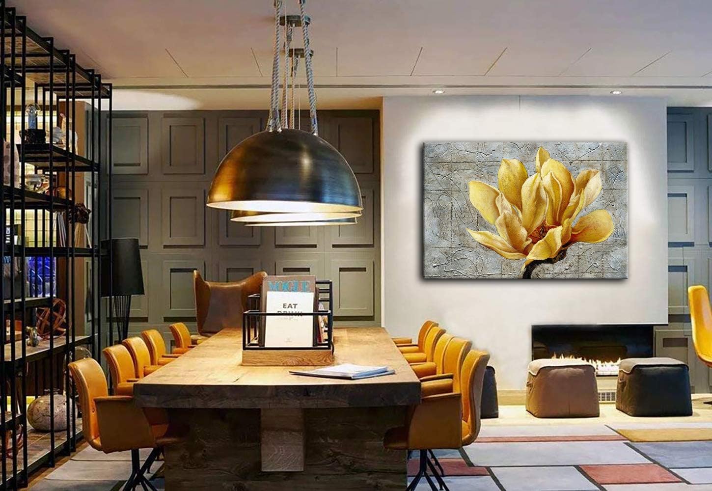 Urttiiyy Yellow Grey Flower Wall Art Abstract Gray Background Print on Canvas Home Decor Decal Pictures Poster for Bedroom Living Room Printed Painting Gifts Framed Ready to Hang - 36''x24''