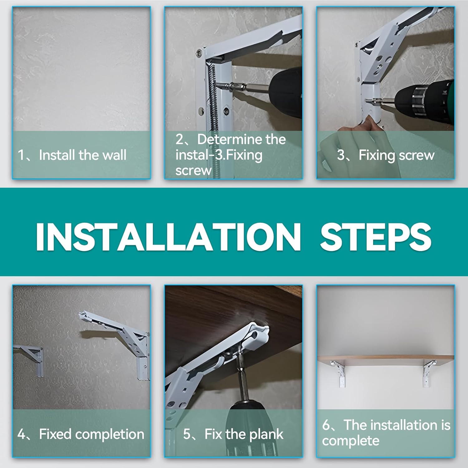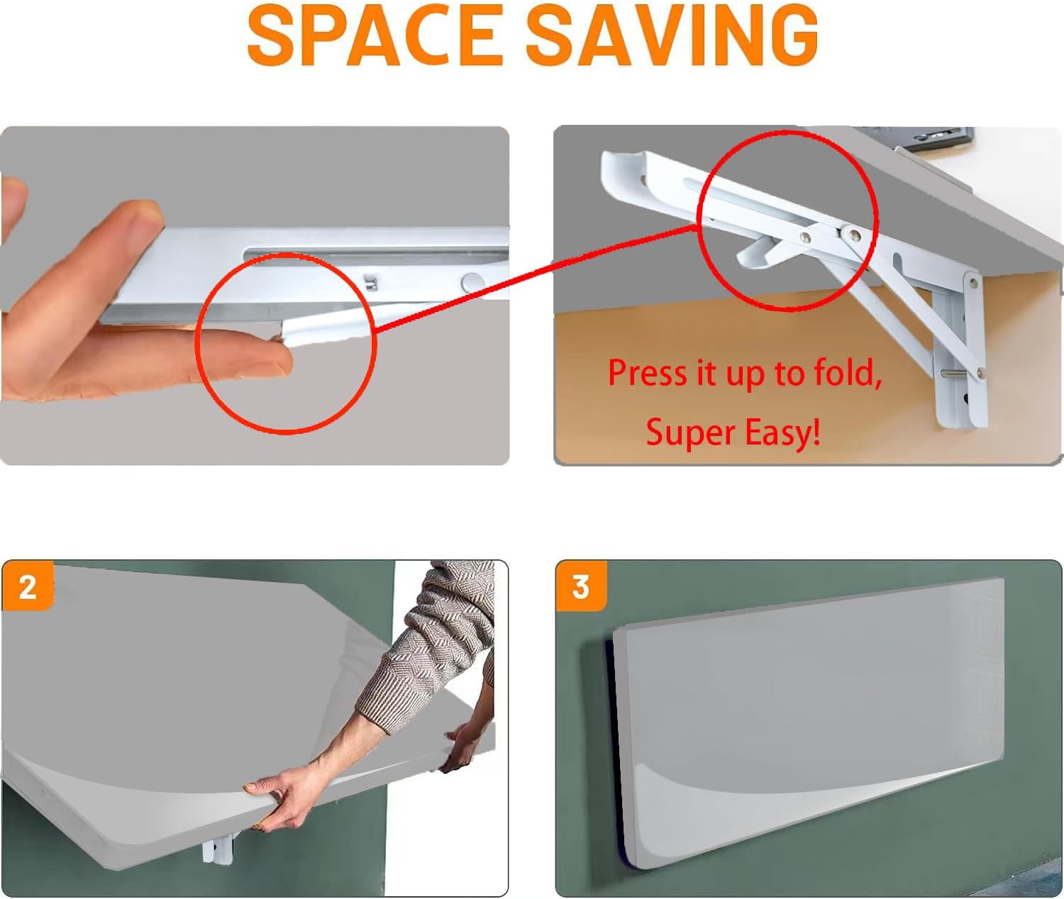 FUYAO Fold Wall Mounted Table Laundry Folding Table with Bracket Portable Drop Leaf Floating Small Wooden Desk Folding Table for Kitchen Laundry Room Dining Room