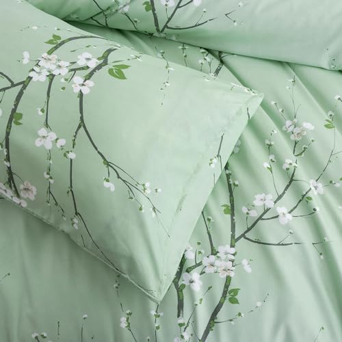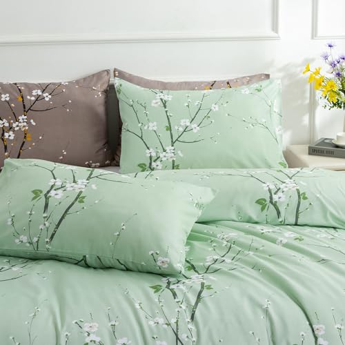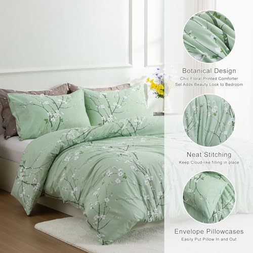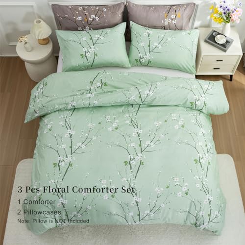 EAVD Garden Style Small Floral Comforter Set Queen Fluffy Soft Microfiber Chic Shabby Floral Bedding Set with 2 Pillowcases Reversible Cute Botanical Comforter Set for All-Season
