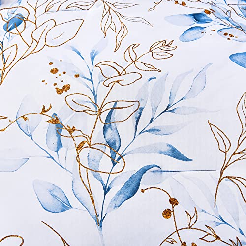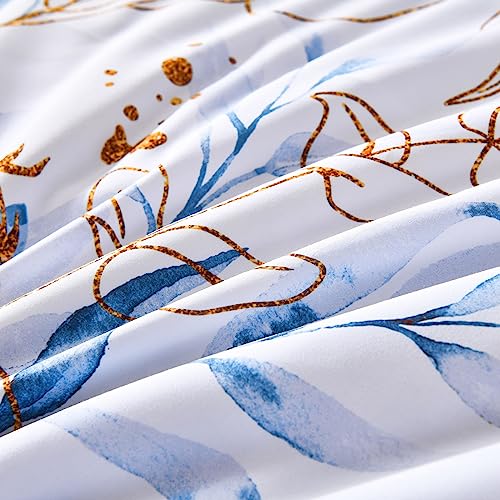 WONGS BEDDING Bule Comforter Set Queen,7 Pieces Botanical Reversible Bed in a Bag Floral Leaves Bedding Set Soft Microfiber(1 Comforter,2 Pillowcase,2 Pillow Shams,1 Flat Sheet,1 Fitted Sheet)