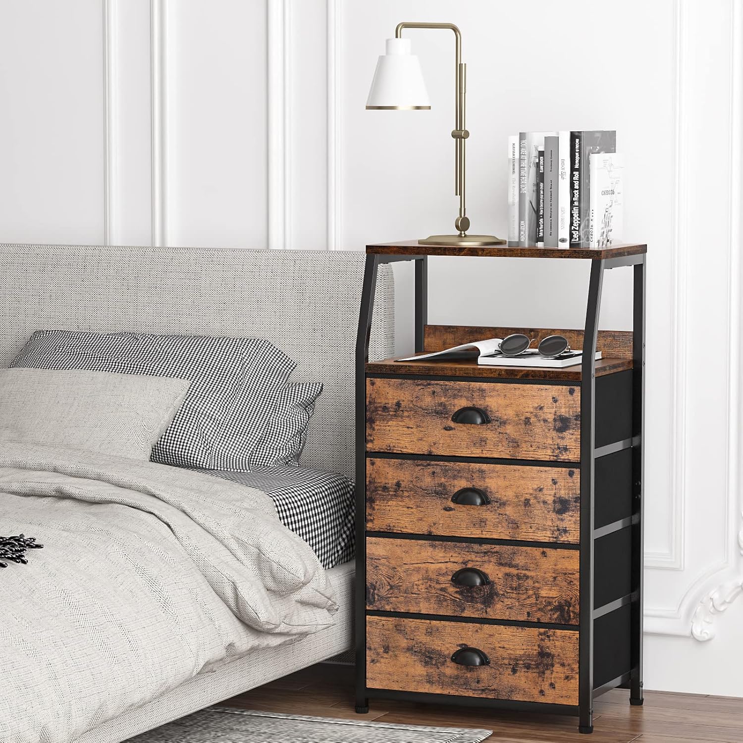 Furnulem 39inch Tall Nightstand with 2 Drawers and Charging Station, Vertical Storage Tower Fabric Dresser for Bedroom, Hallway, Entryway, Nursery