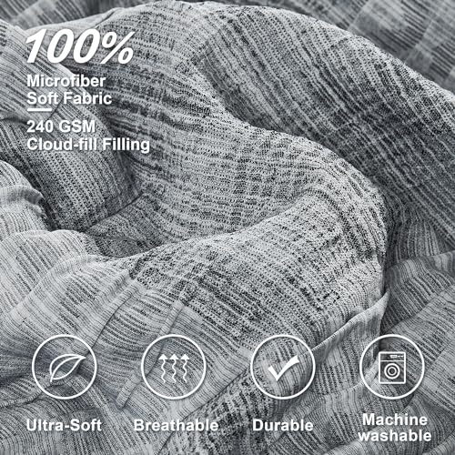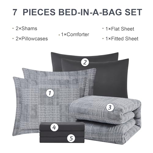 MaiRêve Blue Comforters Queen Size, Textured Design Queen Size Bedding Bet, 7 Pieces Bed in a Bag Queen with Lightweight Premium Comforter, Sheets, Pillowcases & Shams (Grey Blue,90"x90",Queen)