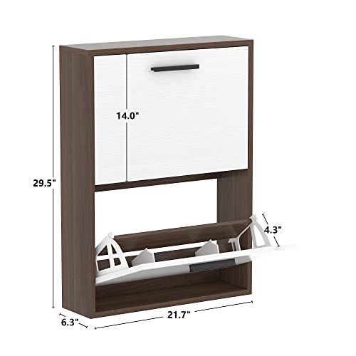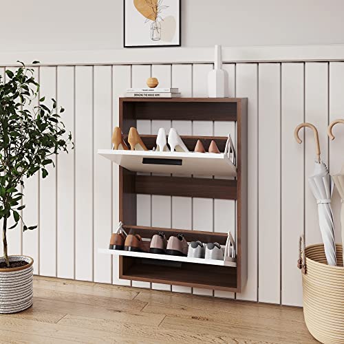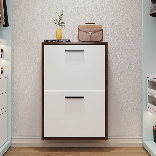 Shoe Cabinet, Wall Mounted Shoe Organizer with 2 Flip Drawers, FSSR006