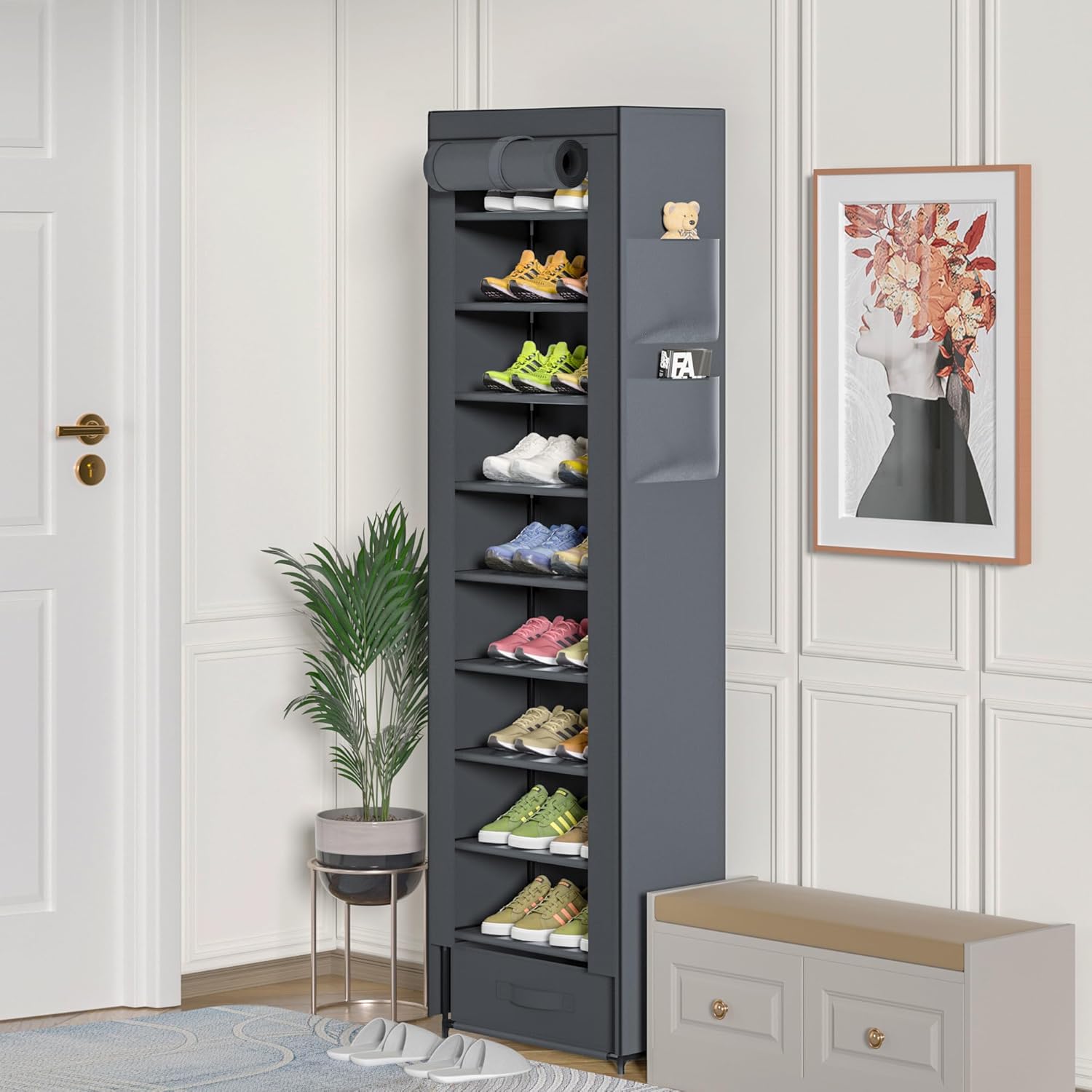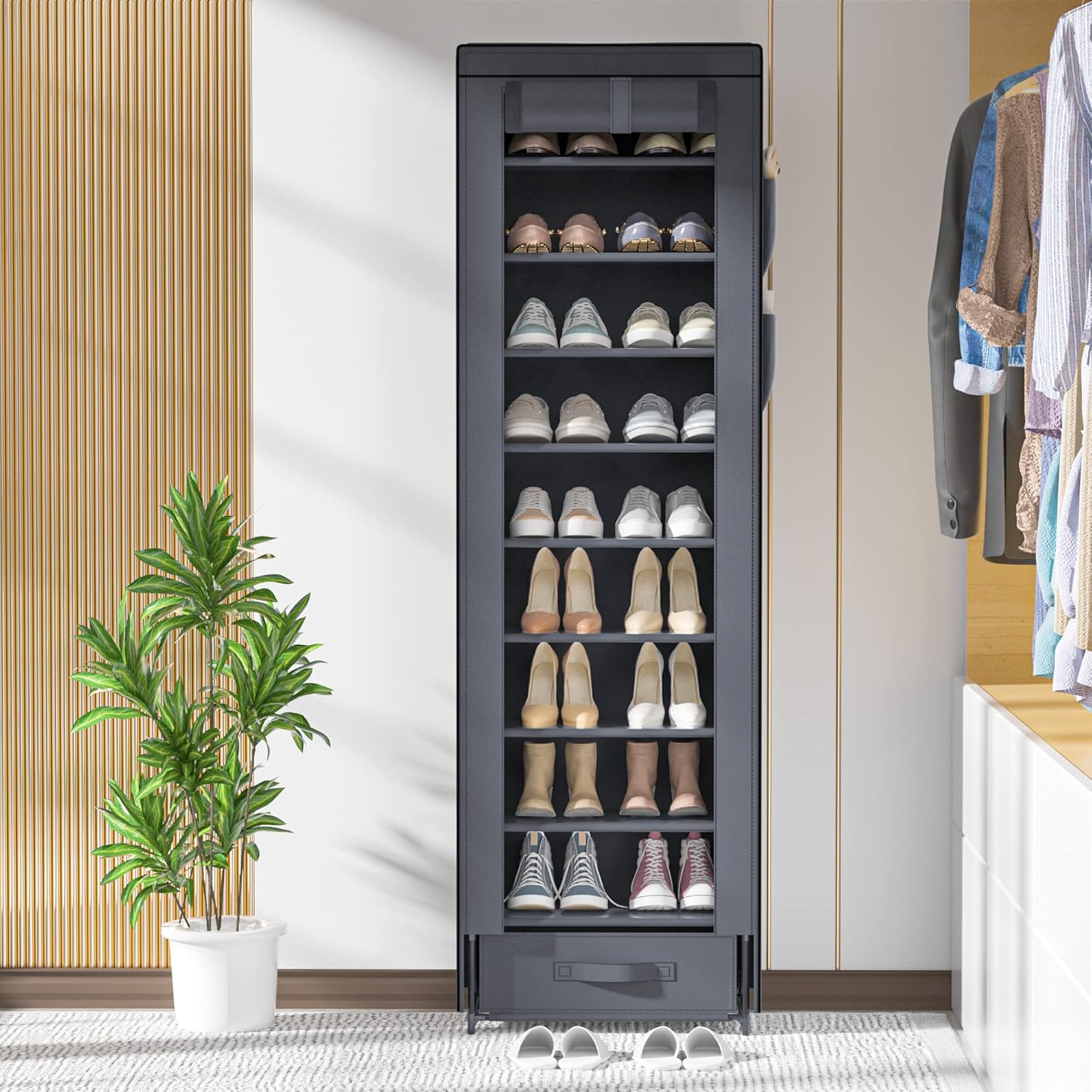 10 Tier Narrow Tall Shoe Rack and Dustproof Shoe Cabinet, Save Space