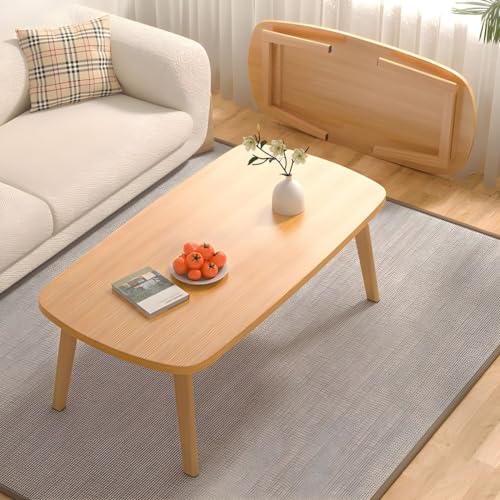 KWOKING 16" H Contemporary Coffee Table Folding Wooden Cocktail Table Japanese Coffee Table Thickened MDF Wood Table Legs Installation-Free Foldable Small Coffee Table Natural 47" L x 23" W x 17" H