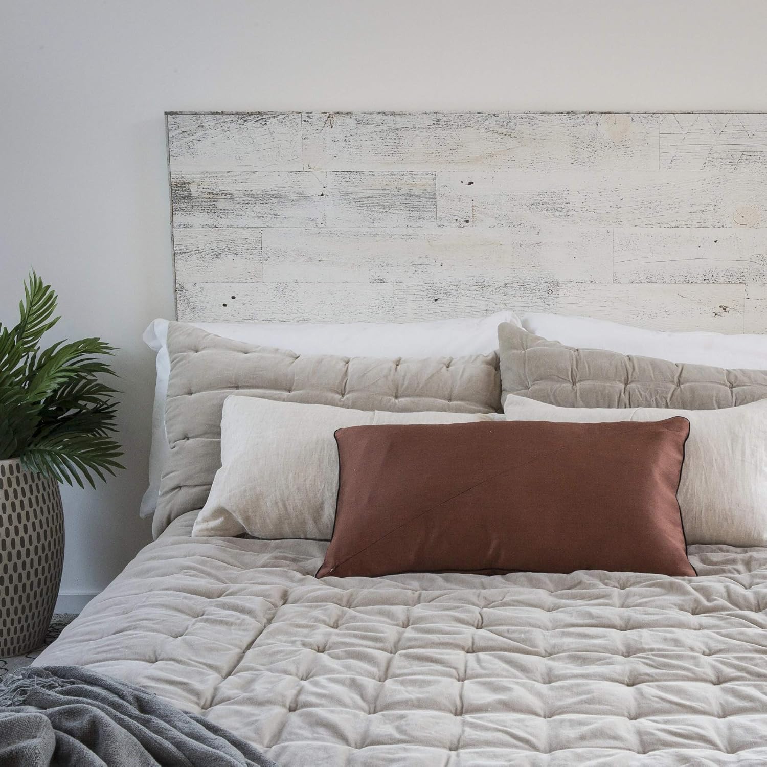 Stikwood Reclaimed Weathered Wood White Stikit Headboard Queen | 35" H x 64" W | Easy Peel & Stick, 4 Count