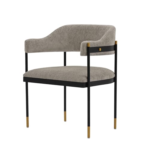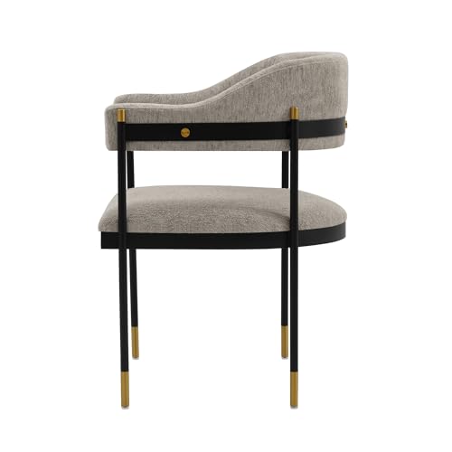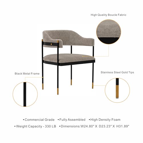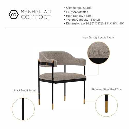Manhattan Comfort Lia Boucle Dining Chair with High Density Foam Padding, Stunning Metal Frame with Gold Accents and Floating Back Design, Fully Assembled Kitchen Armchair, Grey