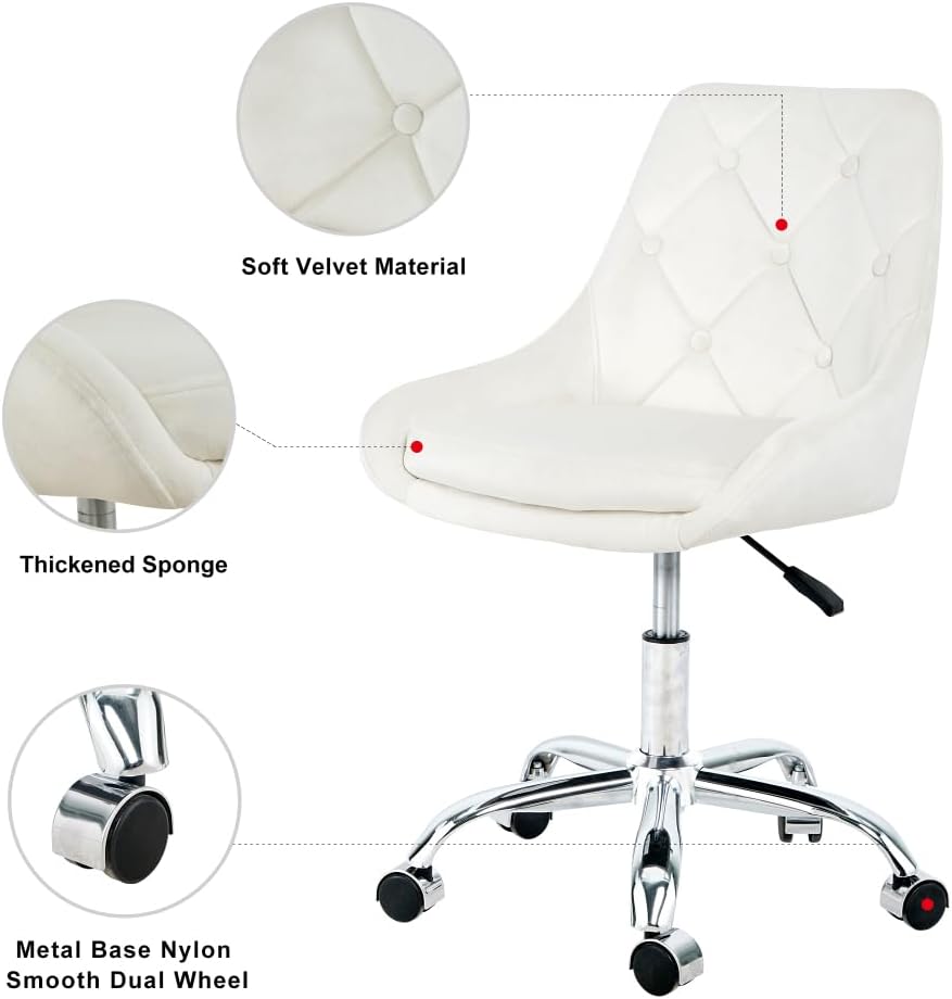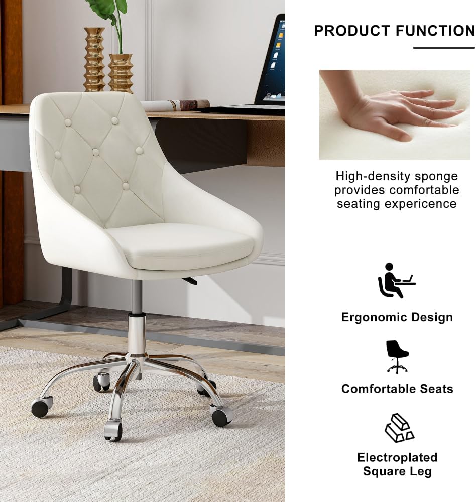 Modern Velvet Fabric with Chrome Legs Living Room Furniture Dining Chair, Soft and Comfortable, Lift Adjustment, Movement Convenient, Space Saving. (Set of 1) Foam Beige Metal