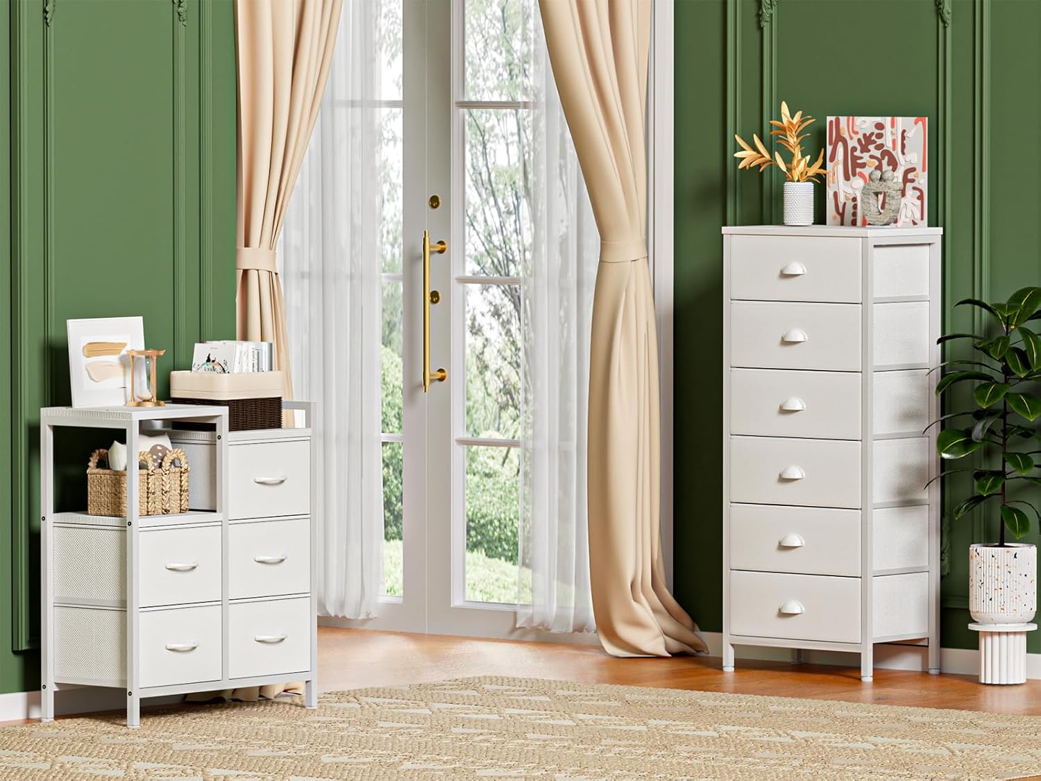 Furnulem White Tall Dresser for Bedroom, Night Stand with 3 Fabric Drawers and Charging Station in Living Room,Closet,Entryway,Hallyway