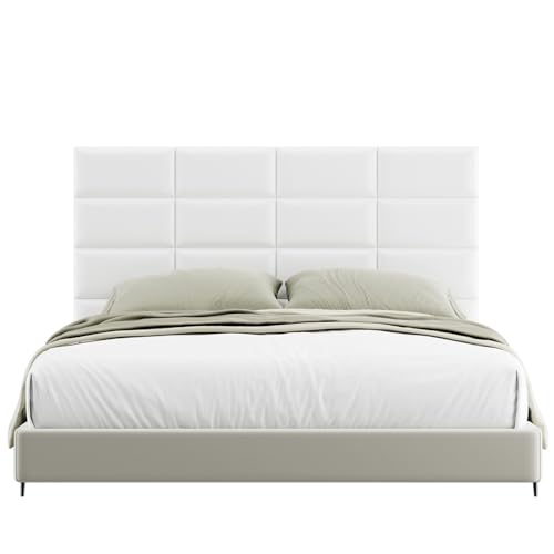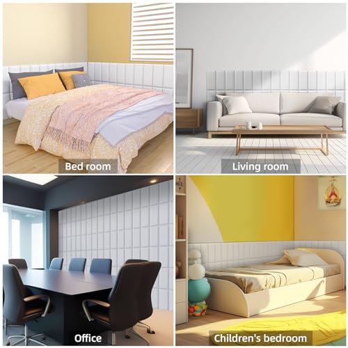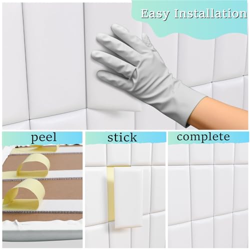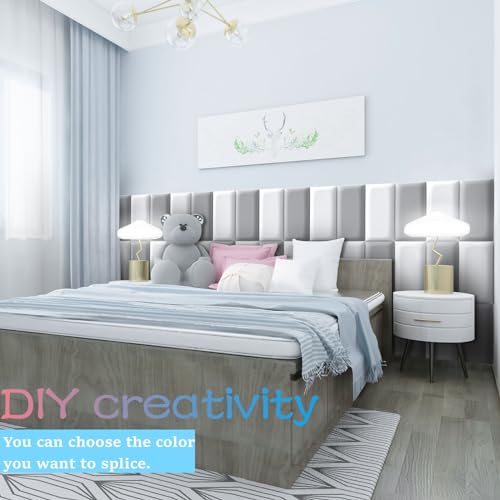 Peel and Stick Headboard Grey Upholstered Wall Panels, 10 Panels Sized 7.8" x 15.7", 3D Anti-Collision Soundproof Self-Adhesive Wall Panel for Bedroom,Living Room