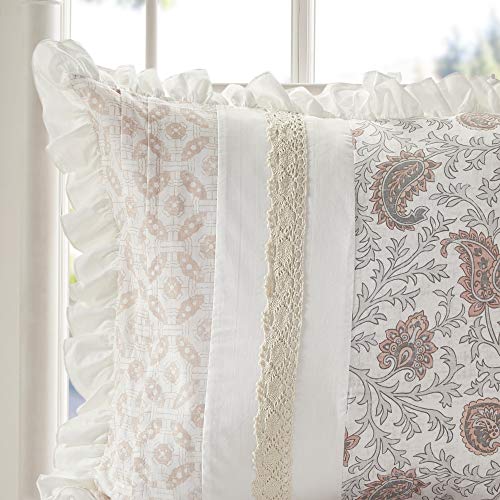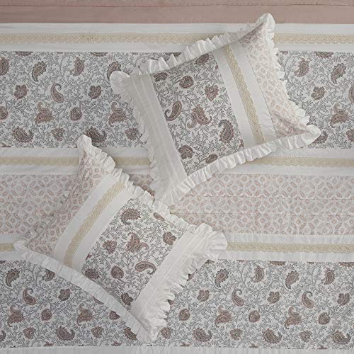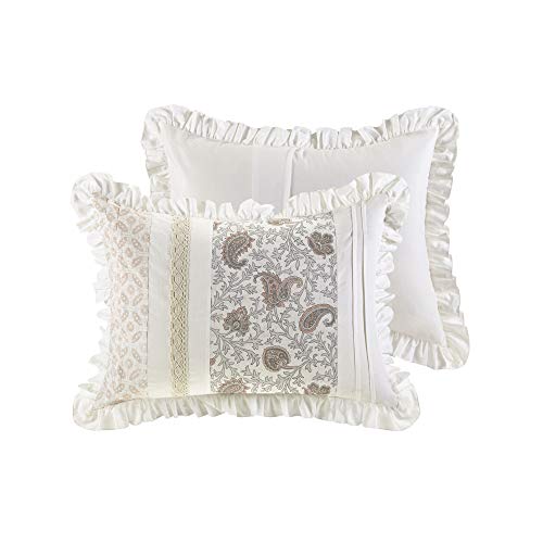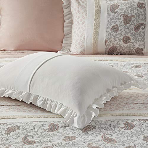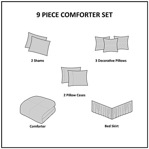 Madison Park Comforter Set, Seersucker Floral Queen Size Comforter Sets, Microfiber Comforters, All Season Lightweight Comforter, Throw Pillows, Caralie, Full/Queen Aqua 5 Piece