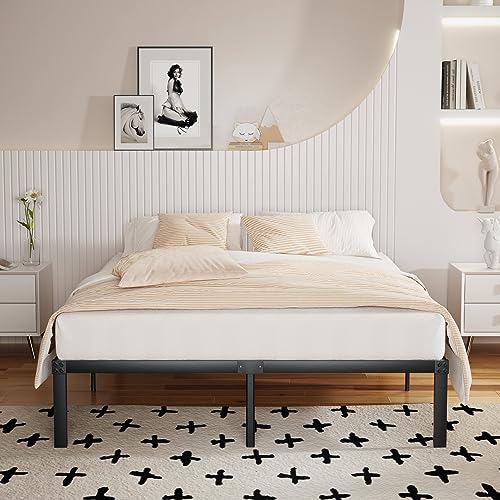 VECELO 14 Inch Metal Queen Size Bed Frame,Black Basic Steel Slats Platform, Easy Assembly Heavy Duty Noise Free/No Box Spring Needed,Industrial(2 Set)