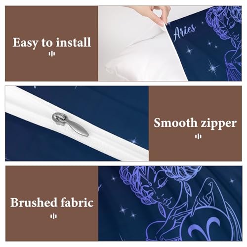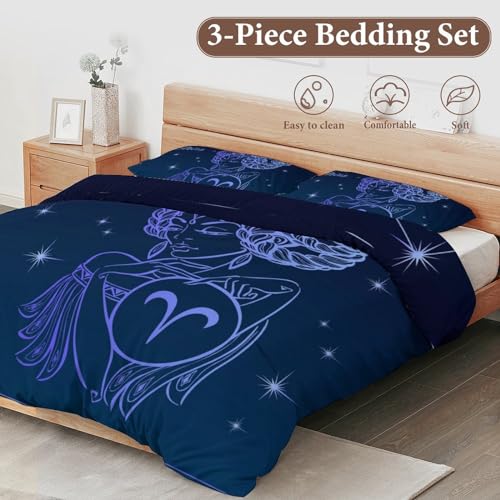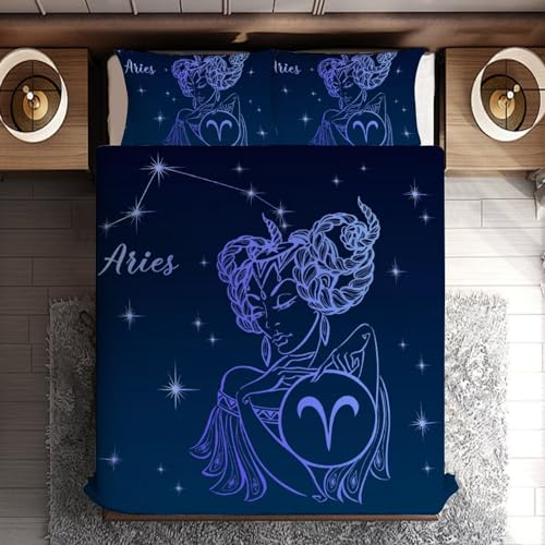 Delerain Comforter Set Queen Size, Aries Zodiac Sign 3-Piece Bedding Set for Women Men Modern Soft Microfiber Bedroom Set Room Decor, 1 Duvet Cover + 2 Pillowcases