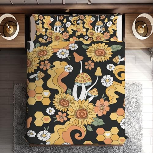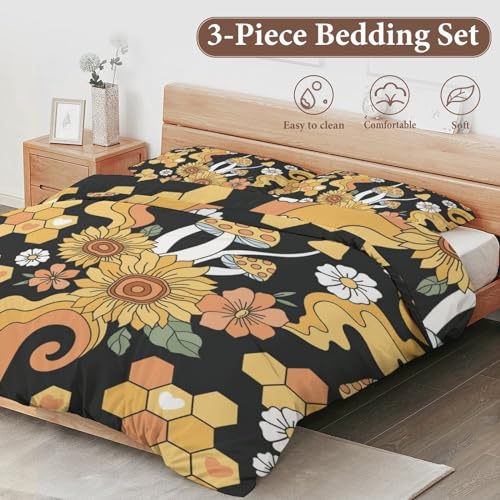 Delerain Comforter Set Queen Size, Sunflower Bee Gnomes 3-Piece Bedding Set for Women Men Modern Soft Microfiber Bedroom Set Room Decor, 1 Duvet Cover + 2 Pillowcases
