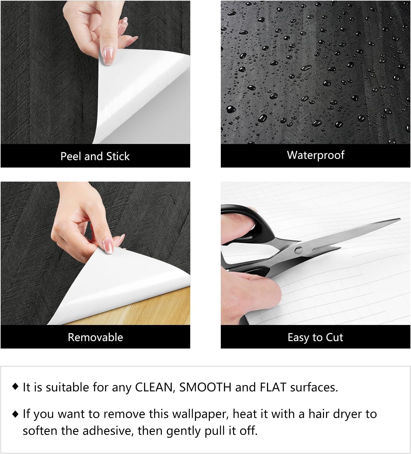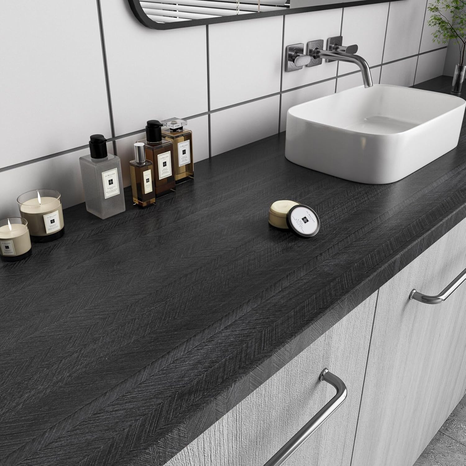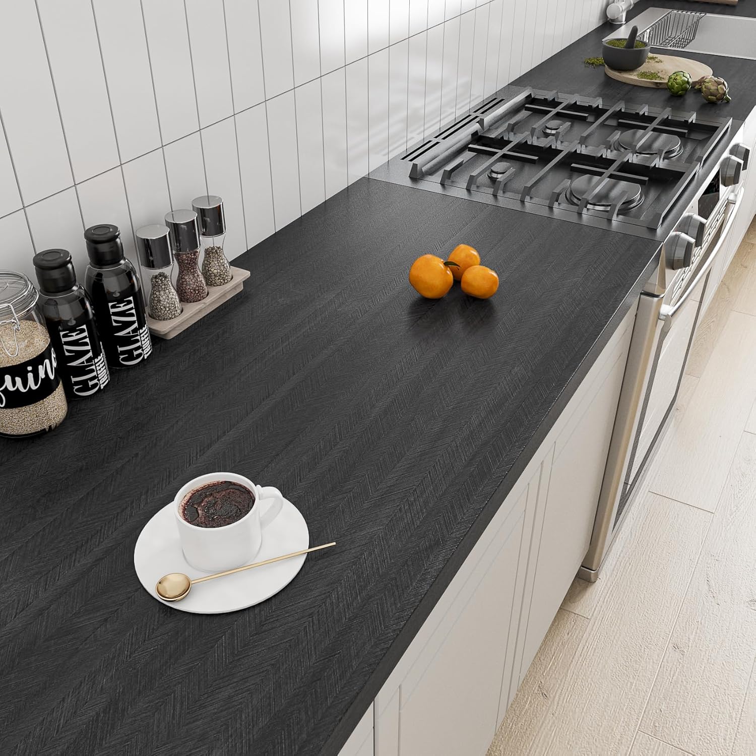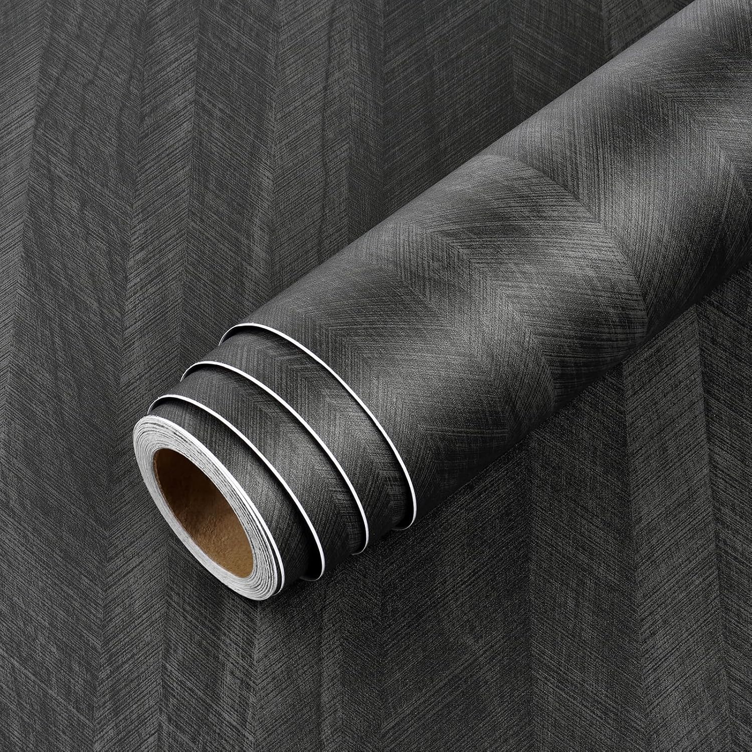 LACHEERY Matte Black Wood Grain Contact Paper 160 x 36 Inch Extra Wide Peel and Stick Wallpaper Dark Wood Contact Paper for Countertops Waterproof Self Adhesive Kitchen Countertop Counter Vinyl Wrap