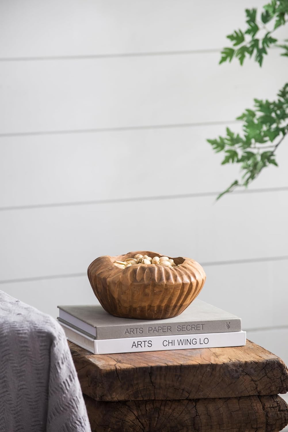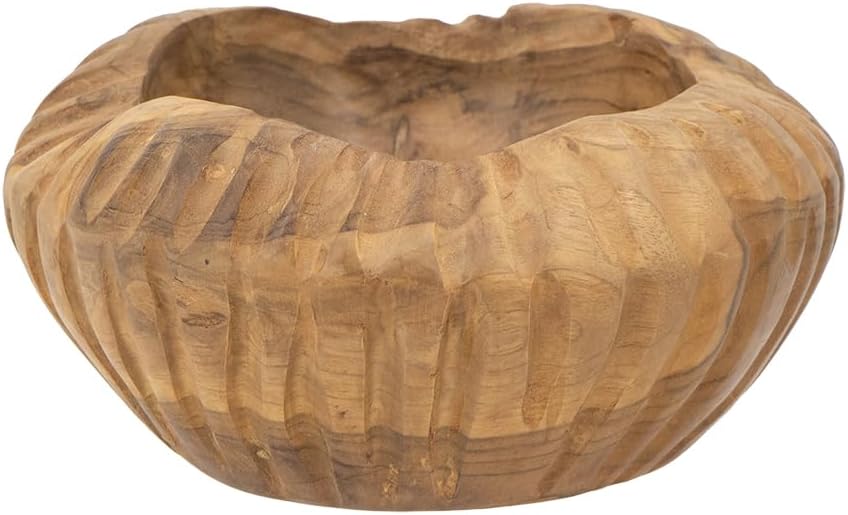 A&B Home Handcrafted Teak Wood Decorative Bowl, Natural Color, for Living Room Kitchen Dining Room Tabletop Countertop Mantel, 8" x 4"