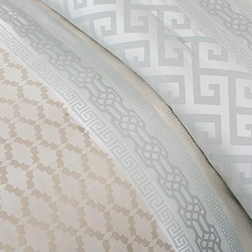 Madison Park Luxury Comforter Set-Traditional Jacquard Design All Season Down Alternative Bedding, Matching Bedskirt, Decorative Pillows, Queen(90"x90"), Bennett, Geometric Aqua 7 Piece