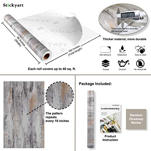 Stickyart 36"x160" Grey Concrete Countertop Contact Paper Textured Vintage Wallpaper Self Adhesive Industrial Style Faux Cement Contact Paper Removable Counter Top Covers for Kitchen Living Room Table