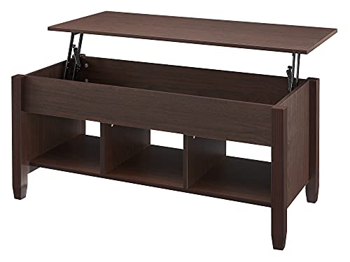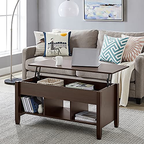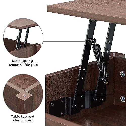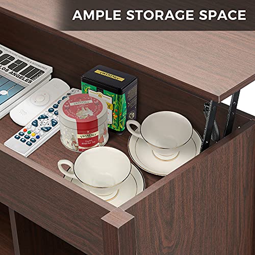 GOOD & GRACIOUS Lift Top Coffee Table with Storage Compartment, Hidden Storage Table Transforming with Convertible Lifting Tabletop for Living Room/Reception/Office, Modern Brown