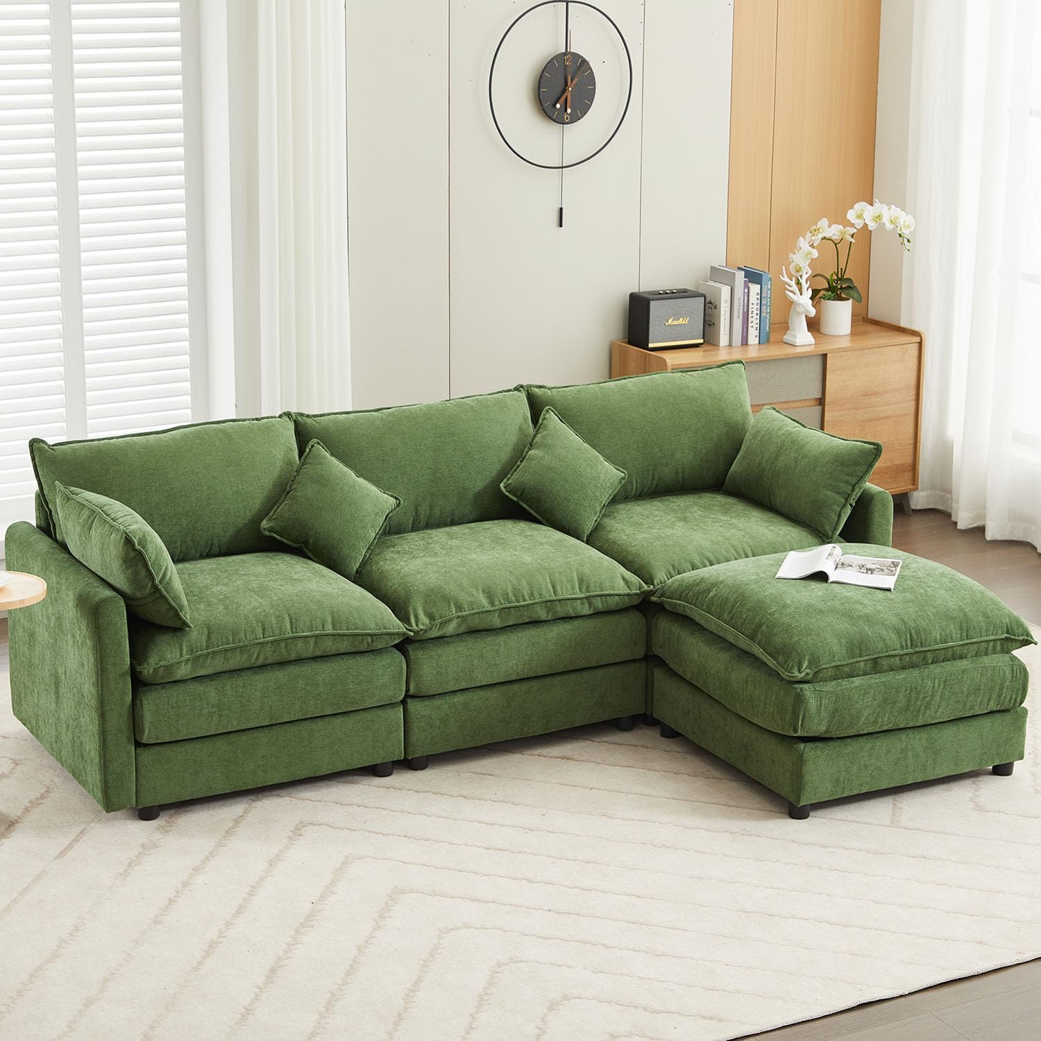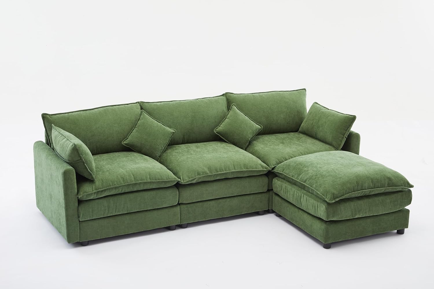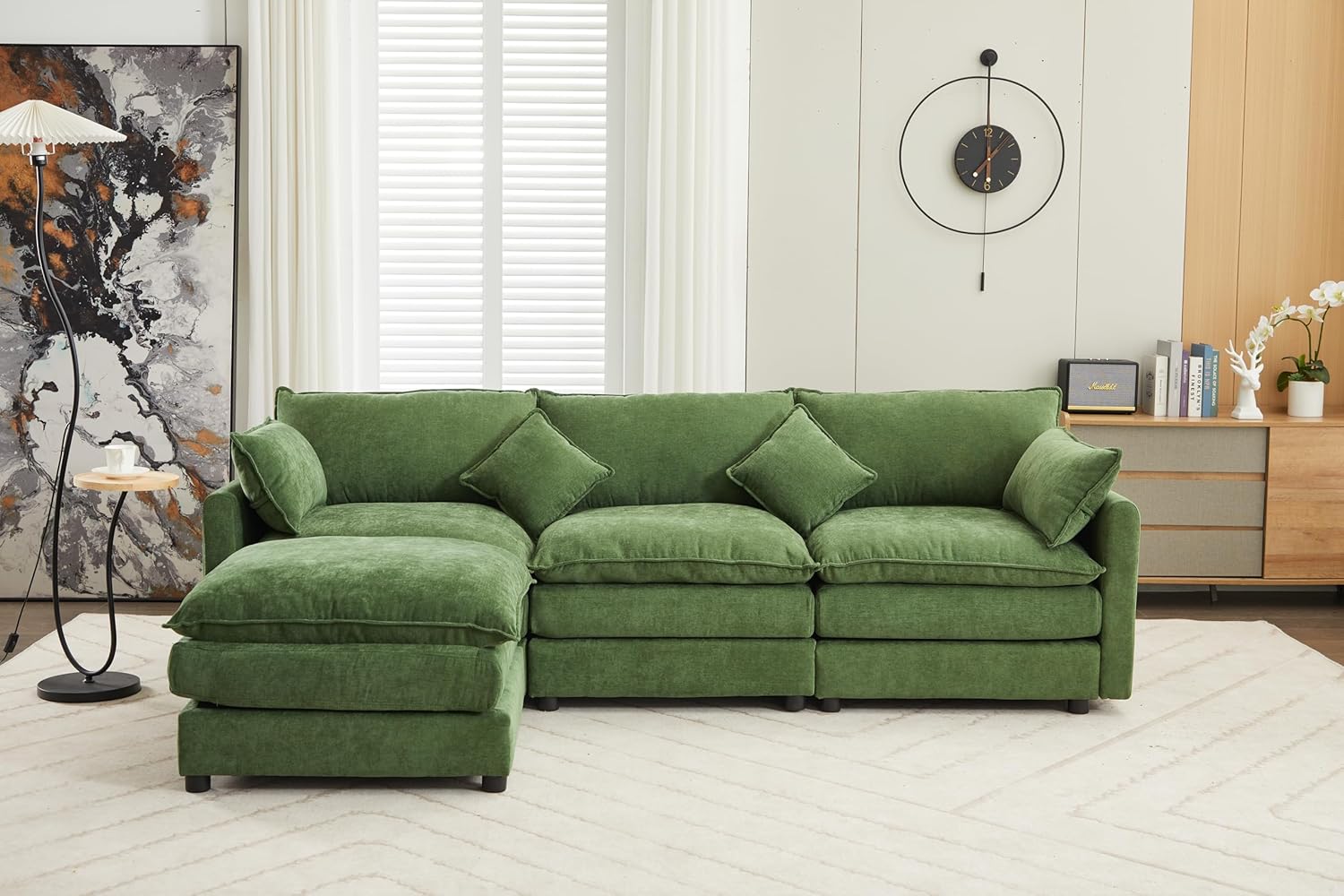 JUSTONE 100.39" Sectional Sofa Couch with Ottoman, Modern Upholstered 3 Seater Sectional Couch,L-Shape Sectional Sofa for Living Room, Office,Bedroom Apartment(Green)