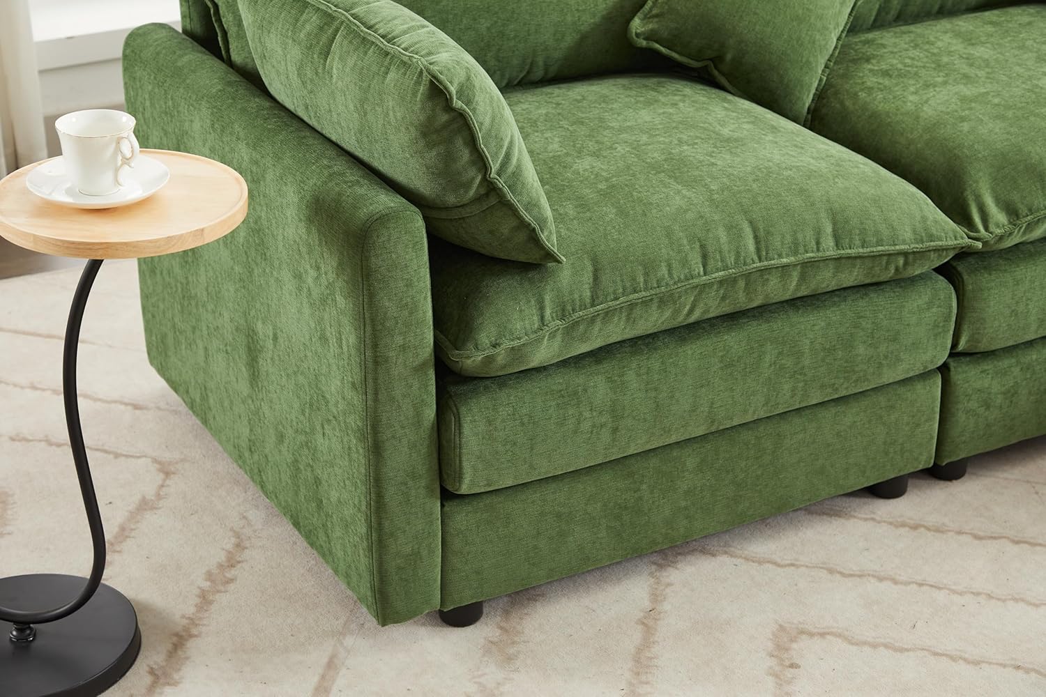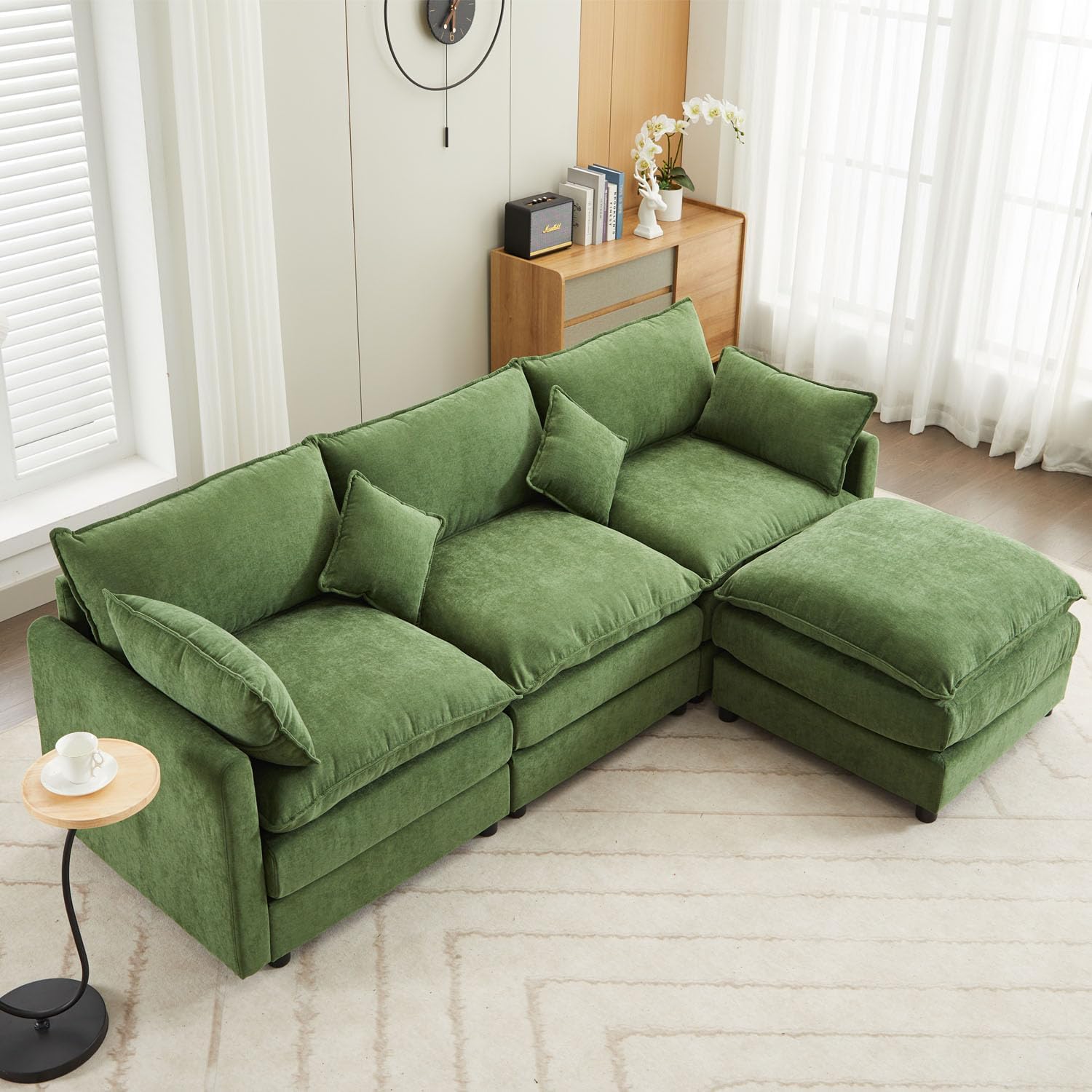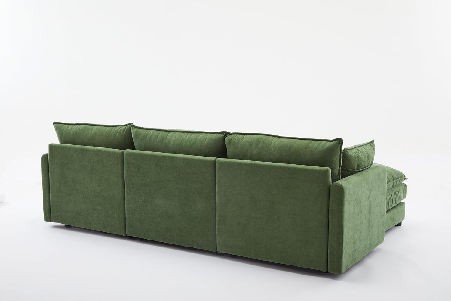 JUSTONE 100.39" Sectional Sofa Couch with Ottoman, Modern Upholstered 3 Seater Sectional Couch,L-Shape Sectional Sofa for Living Room, Office,Bedroom Apartment(Green)