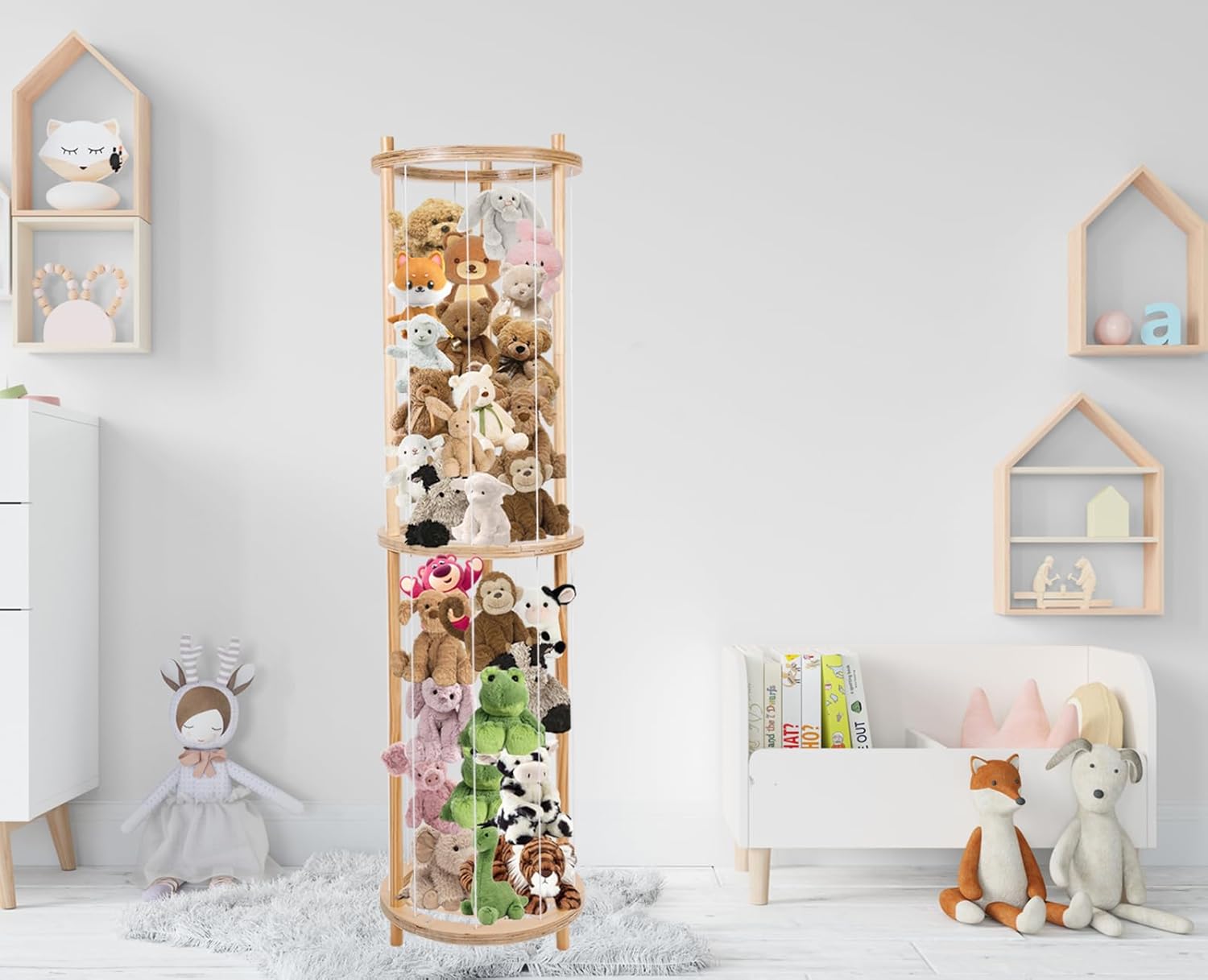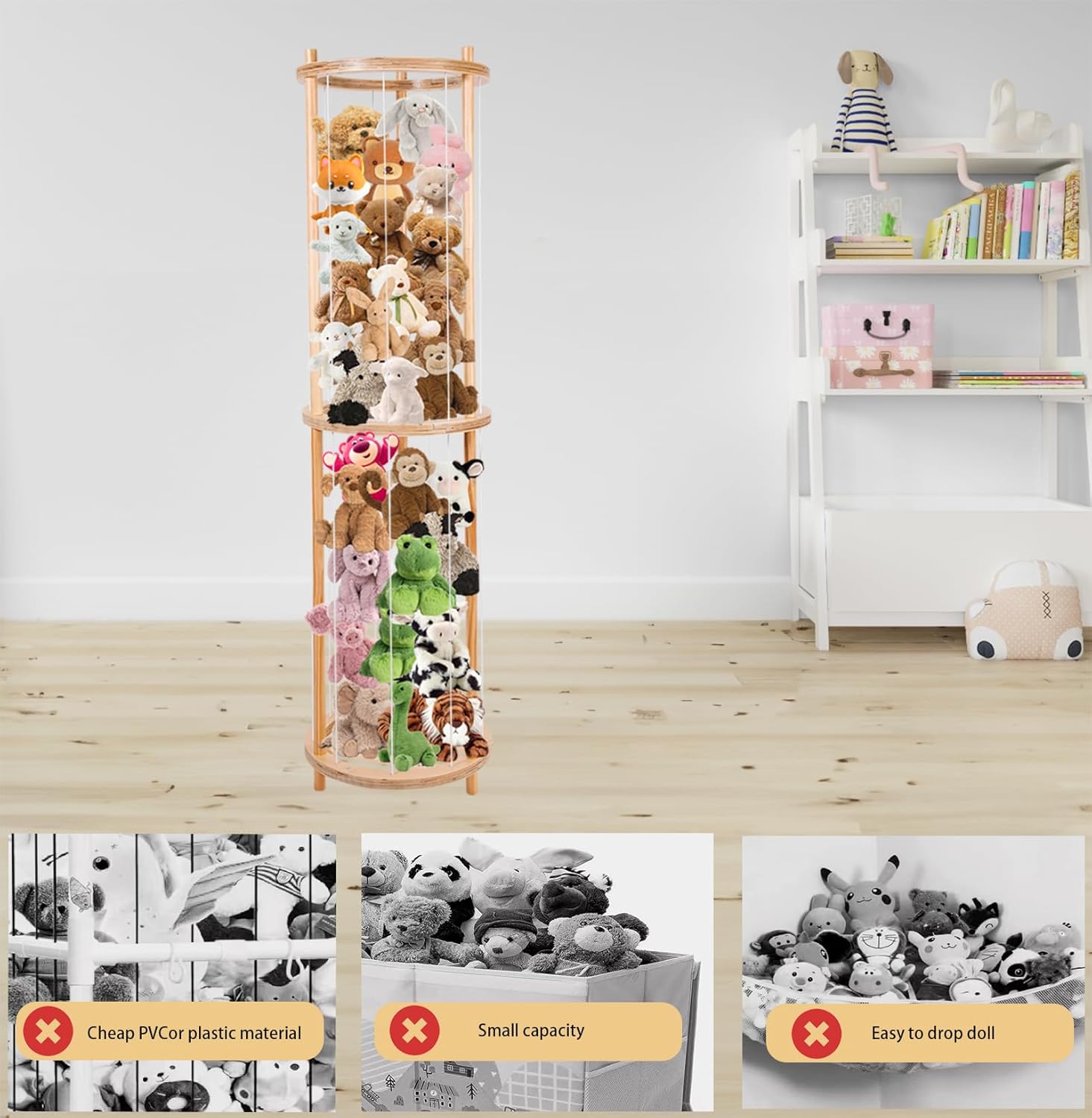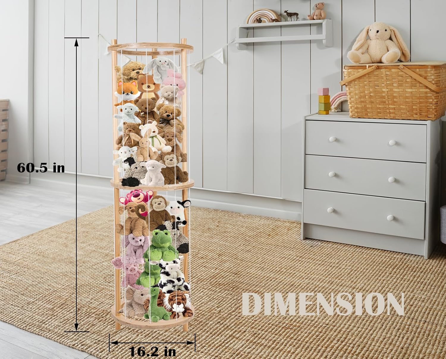 Round Animal Zoo Storage, Soft Toy Organizer, Solid Wood Zoo Cage for Plush Toys, Stuffed Animals Holder for Bedroom Playroom Nursery Room.