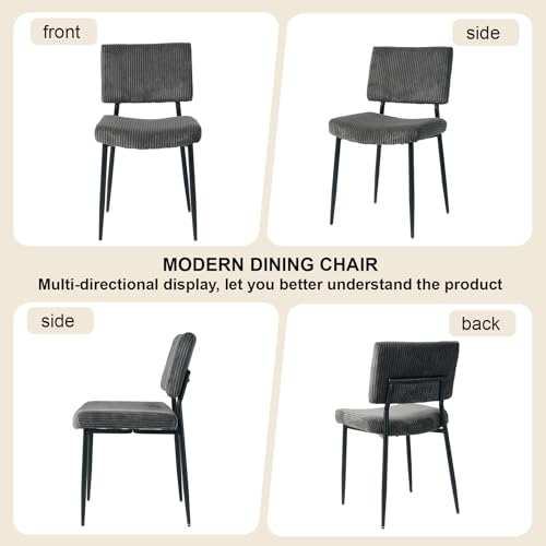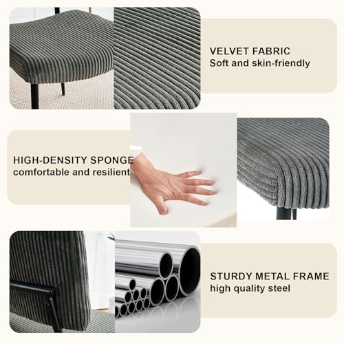 Modern Grey Dining Chairs Set of 4, Mid-Century Kitchen Chairs, Curved Back Velvet Fabric Dining Chairs for Dining Room, Living Room and Kitchen