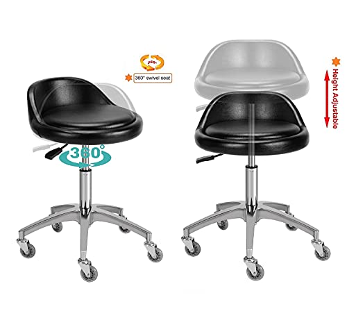 Swivel Rolling Stool with Backrest - Adjustable Stool Chair with Wheels - Heavy Duty Stools 400lb Capacity for Home Salon Facial Spa Massage Clinic and Work Bench (Black)