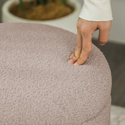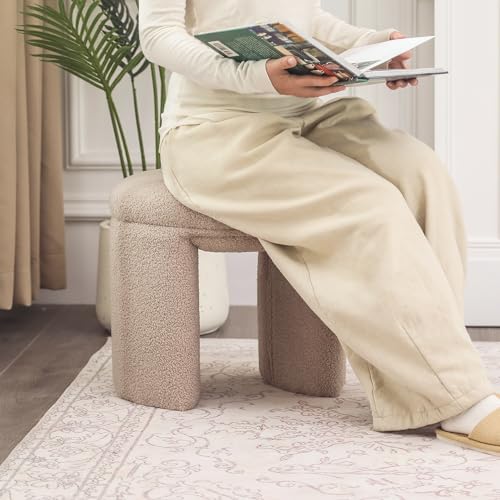 Boucle Ottoman, Round Sherpa Vanity Stool Chair, Small Upholstered Modern Teddy Footstool for Makeup, Living Room, Entryway, Bedroom (Dark Beige)
