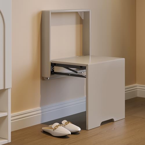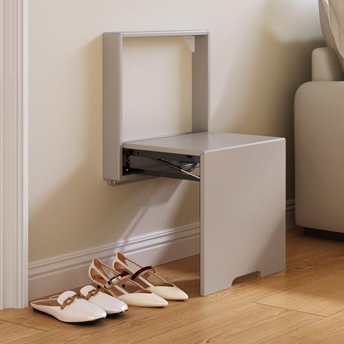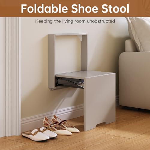 Wall Mounted Shoe Changing Stool, Folding Stool Chair for Entryway, Space Saving Hidden Wall Stools,Folding Entryway Stool, Grey