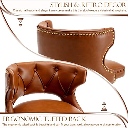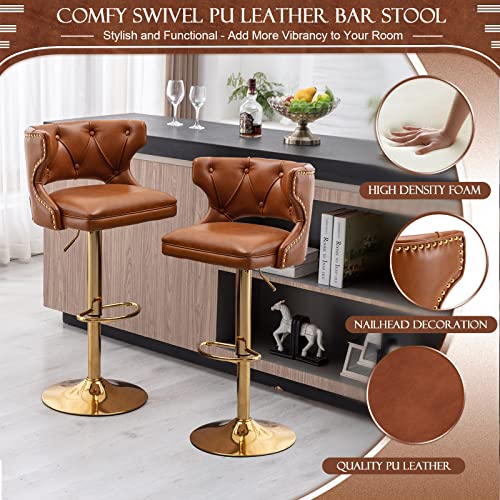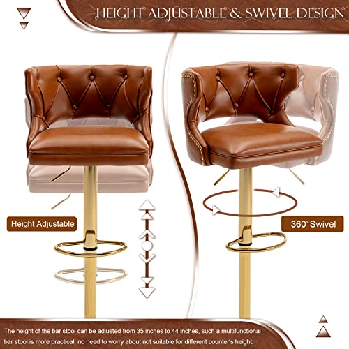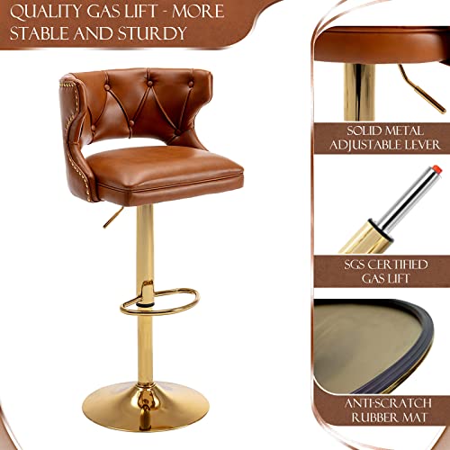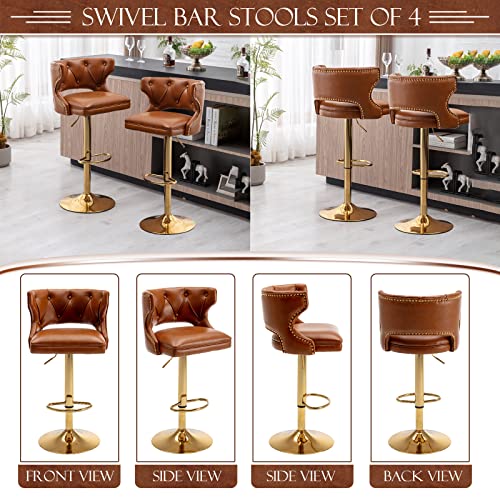 PU Leather Swivel Bar Stools Set of 4, Modern Kitchen Counter Height Barstools, Tufted Back High Dining Stool Chair with Gold Nailhead for Kitchen Island, Home Balcony, Coffee Shop, Bar, Pub, Brown