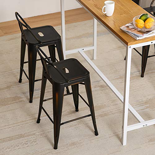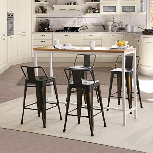 Aklaus Metal Bar Stools Set of 4 Barstools Counter Height Bar Stools with Back Industrial Bar Stools Indoor Outdoor Kitchen Dining Chairs Modern Bar Chairs Distressed Teal Blue 24inch Stools