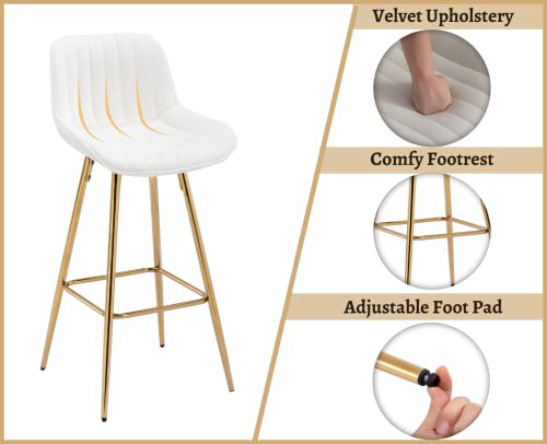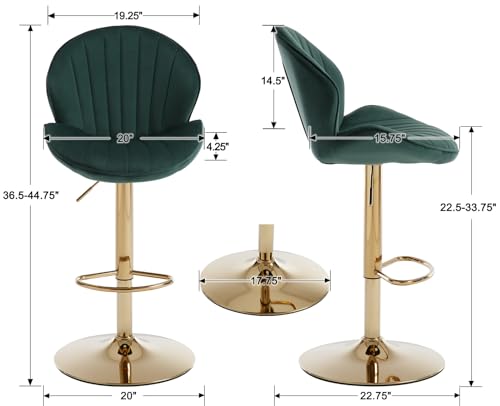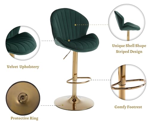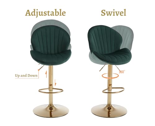 EALSON Swivel Bar Stools Set of 4 Modern Bar Height Barstools with Back Velvet Upholstered High Bar Chairs with Gold Footrest 32 Inch Counter Stools for Kitchen Island/Home Bar/Pub, Green