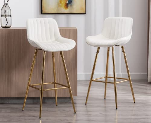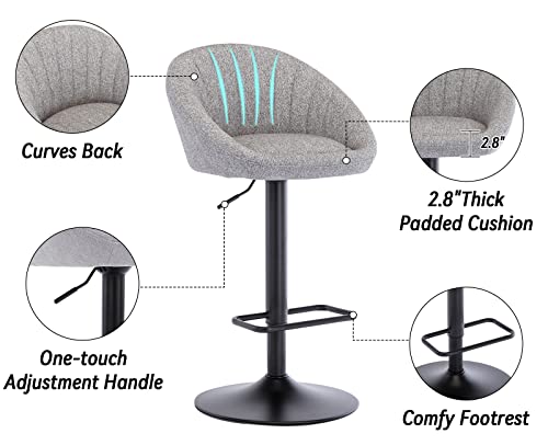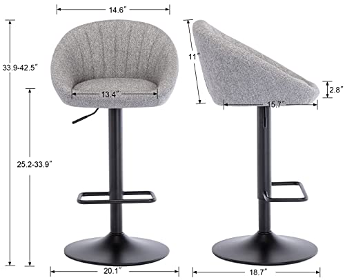 EALSON Velvet Swivel Bar Stools Set of 2 Modern Counter Height Barstools with Back and Gold Base Adjustable Bar Chairs Comfortable Upholstered Kitchen Island Stools for Home Bar/Pub, Grey